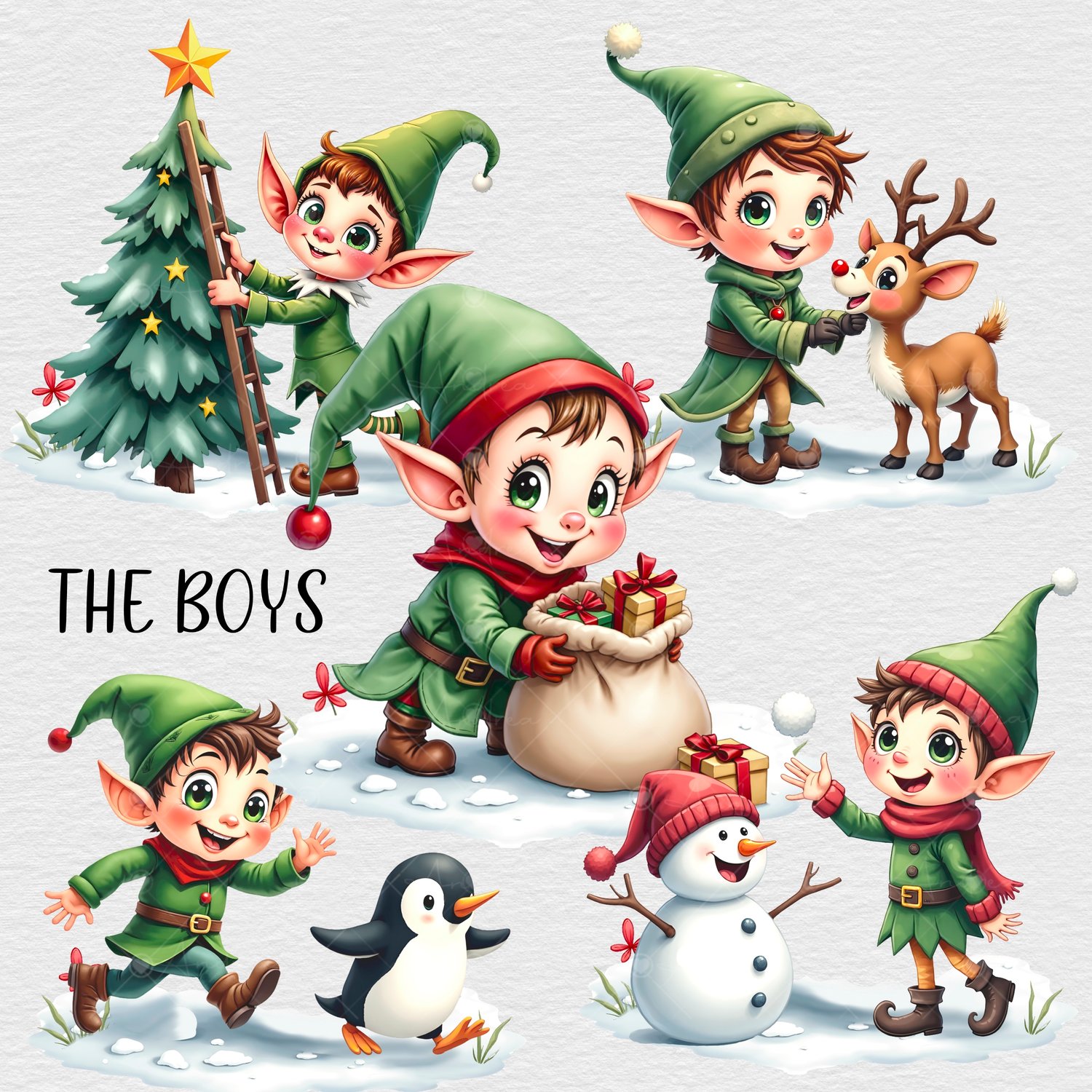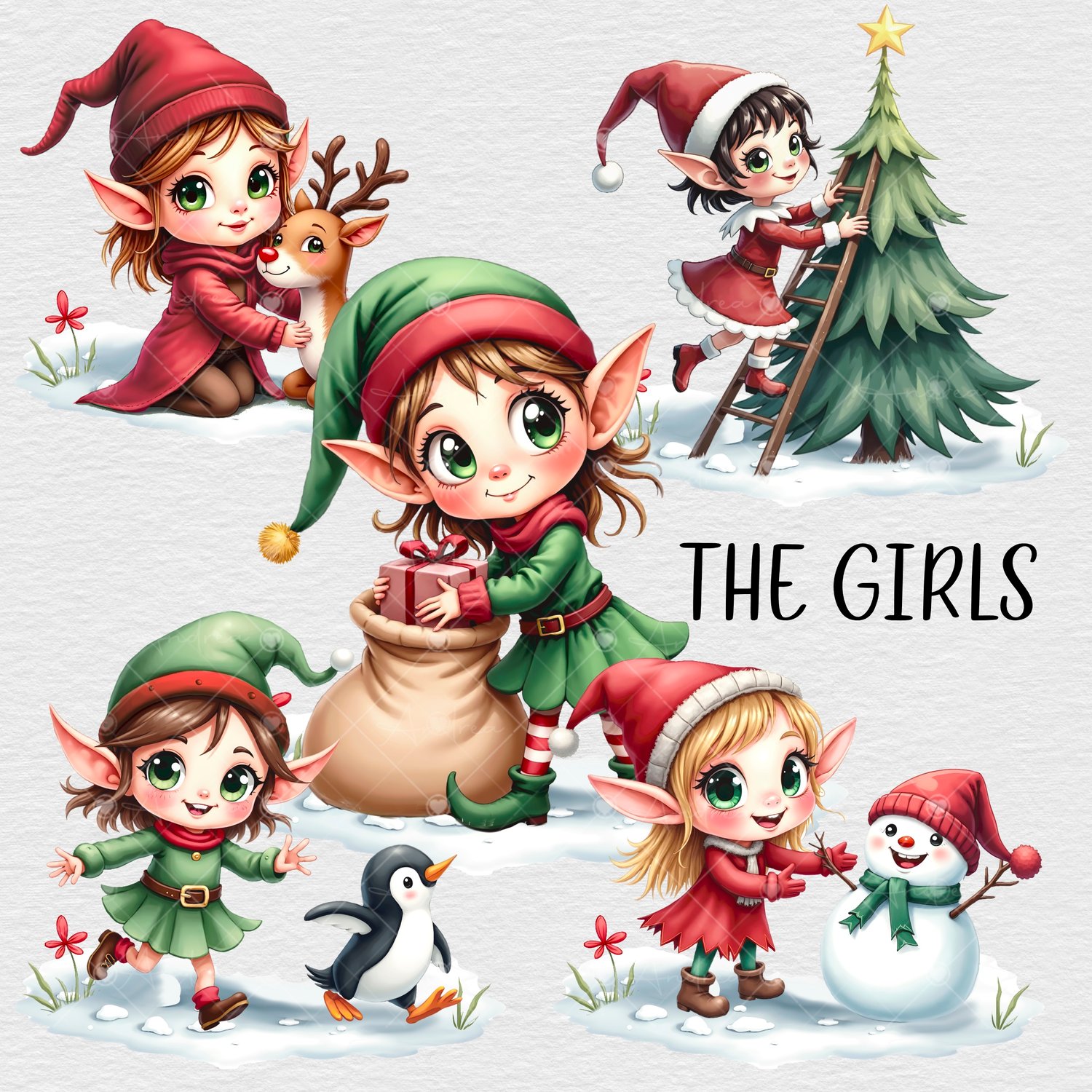 Cute naughty Elves. 5 adorable boys & 5 adorable girls. 10 PNGs.