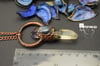 Copper electroformed Pendant clear Quartz crystal point phantom Amethyst crystal and blue Agate cabochon with a dark black patina color