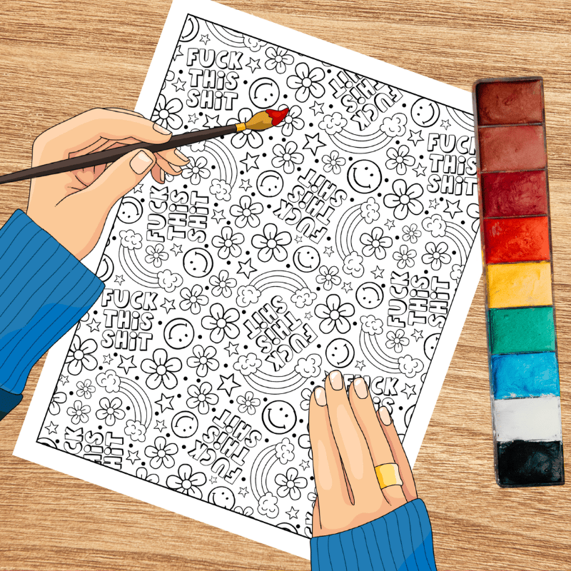 Fuck This Shit Coloring Page Printable 8.5x11 Instant Download PDF & PNG File Pretty Profanities, Swear Words