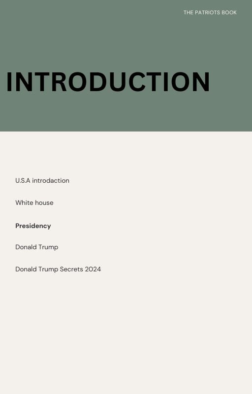 In this short book you will find short history about U.S.A and the White House about the Presidents of U.S.A and the life of our president Donald Trump .Also the main subject in this book is the controversy of our president Trump his work as a president his chances and his secrets if he wins the election in 2024 ! How things will go if he wins and how to help him wins and support him in his decisions .