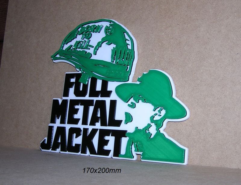 Poster, Sign, Logo of the movie: Full Metal Jacket, these STL and Gcode files have been created to be printed in various colors with any FDM type printer. The color changes have been made with the Elegoo Neptune 3 Pro printer, but they can be printed on any printer.
