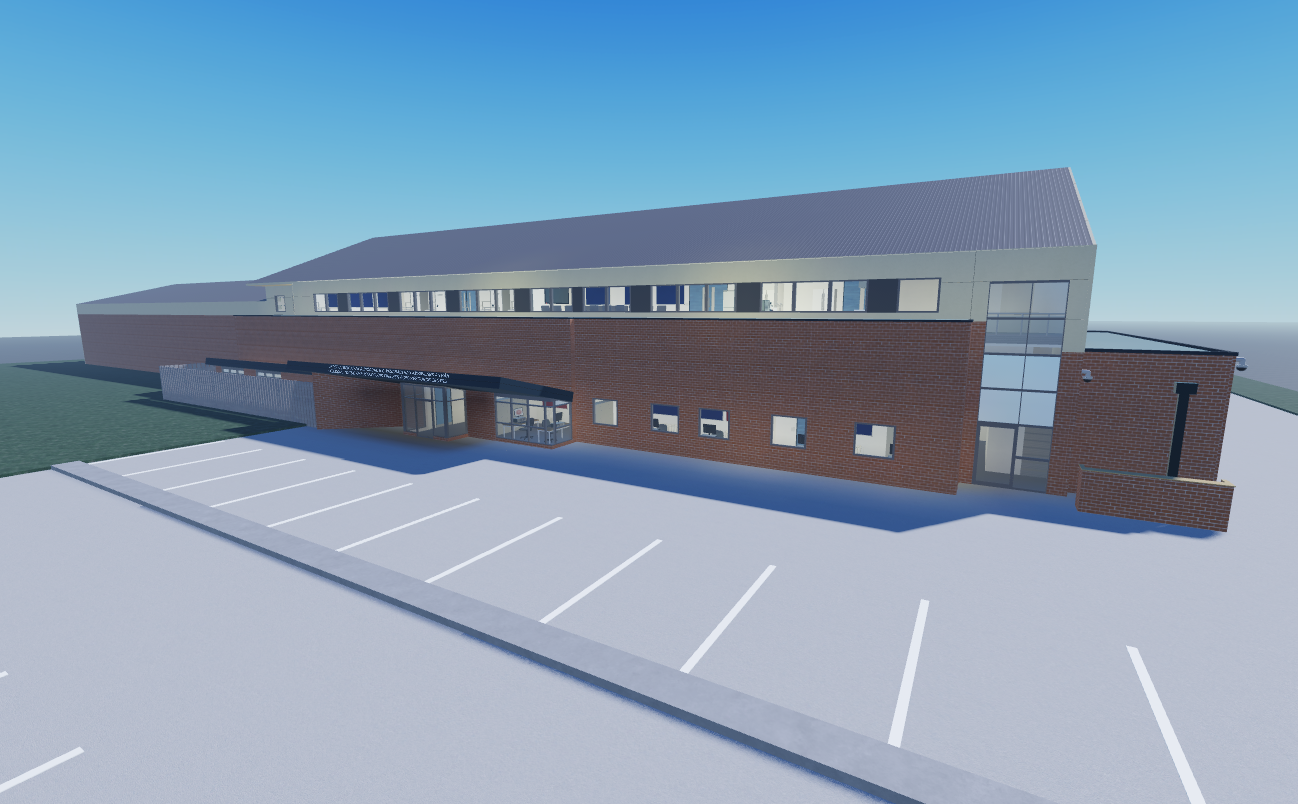 This model is a realistic version of the Fire and Ambulance Resource Centre in Wrexham, North Wales.