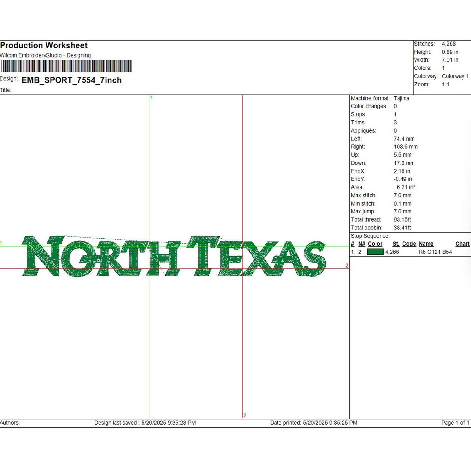 NCAA North Texas College Football Team Writing Logo Embroidery Designs, NCAA North Texas Mean Green Machine Embroidery Files, NCAA Logo embroidery designs, Ncaa North Texas Mean Logo, Digital Download