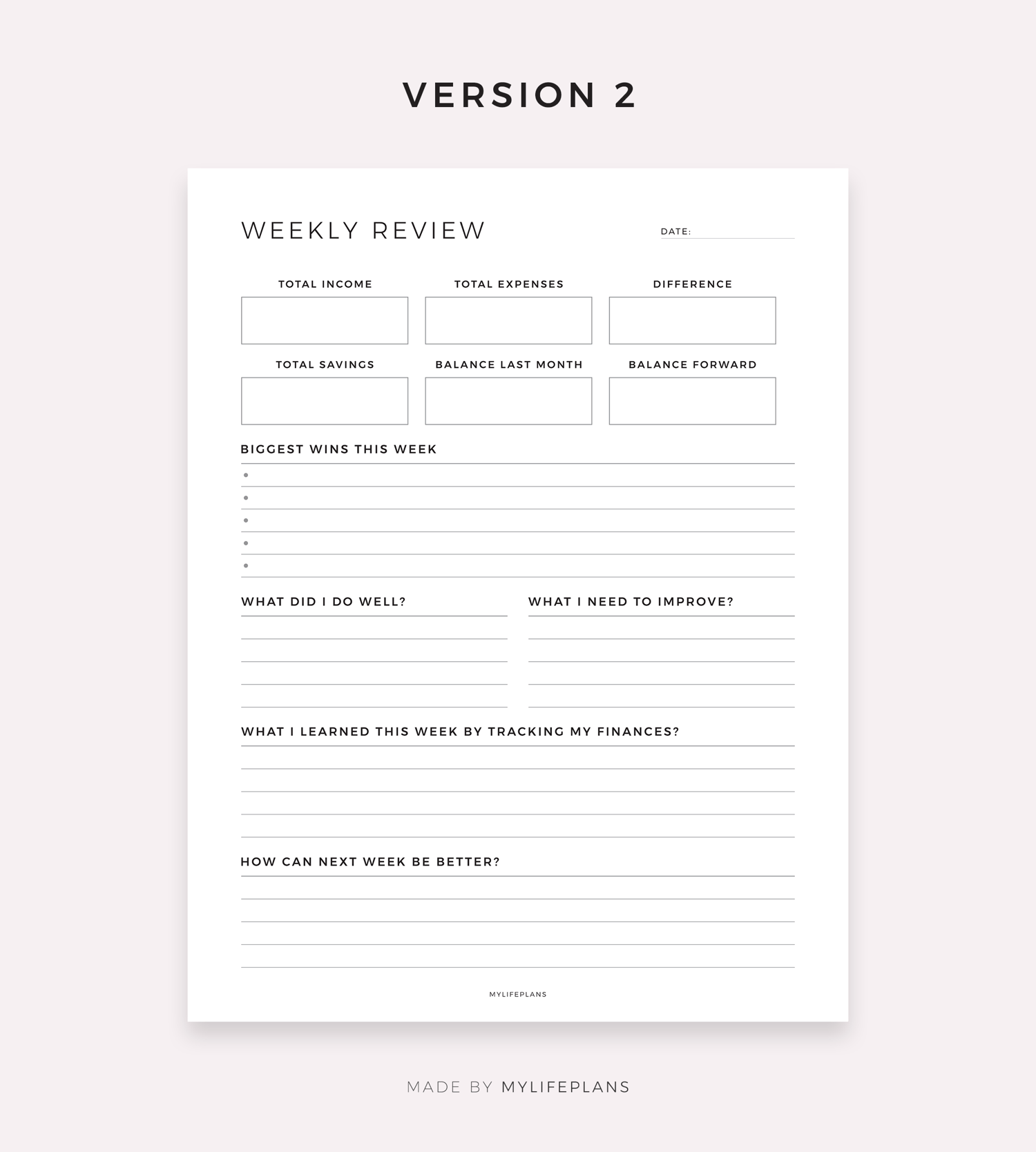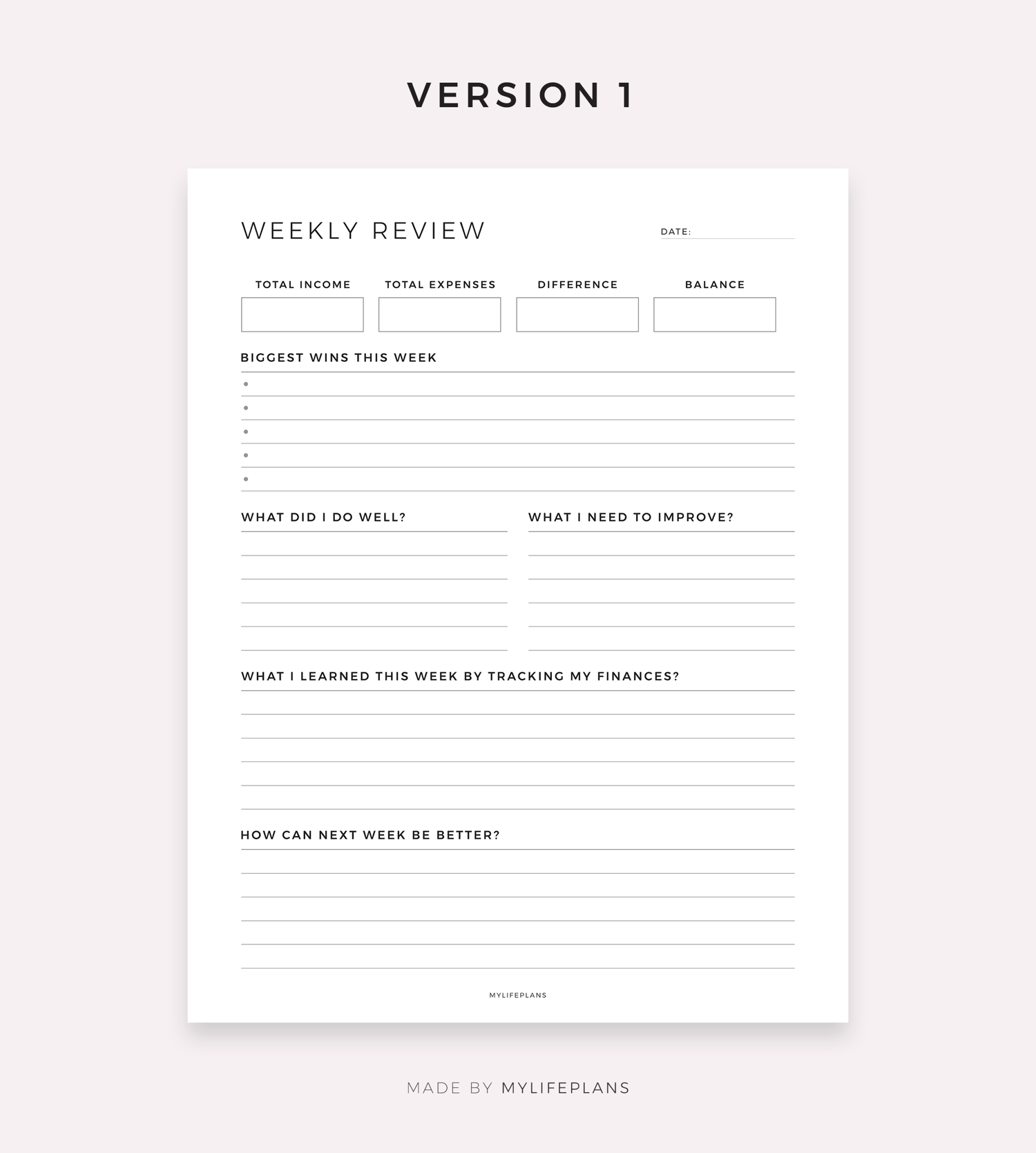 Weekly Financial Review, Digital Template for Goodnotes, Notability, Ipad