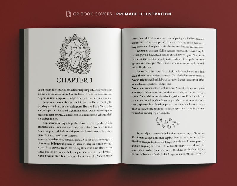Premade Illustration for Paperback and Ebook Formatting | Mirror Roses Set