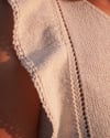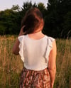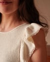 Evoking the beauty of delicate flower petals, the Floret Top features shoulder ruffles adorned with crochet-like details. This top is perfect to embrace the warmth of the season while exuding a soft, bohemian charm.