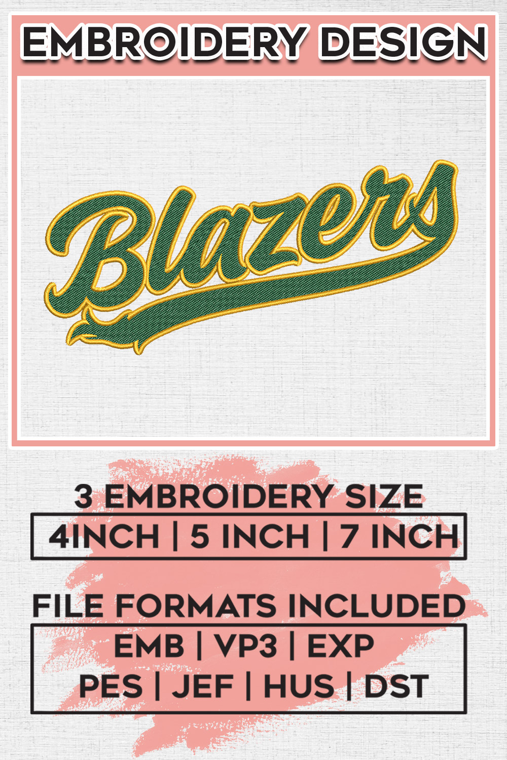 Blazers College Football Team Logo Embroidery Designs, NCAA UAB Blazers Machine Embroidery Files, NCAA Logo embroidery designs, Ncaa UAB Logo, Digital Download