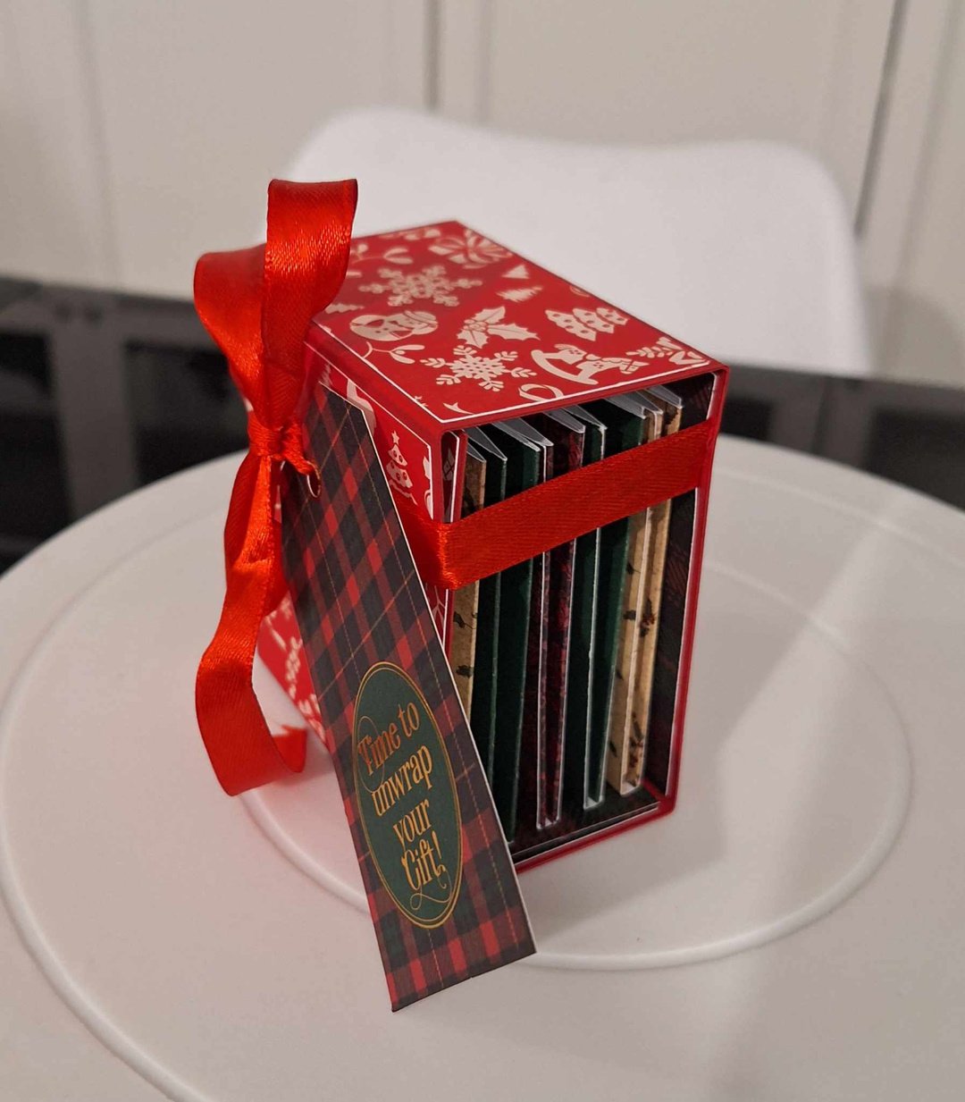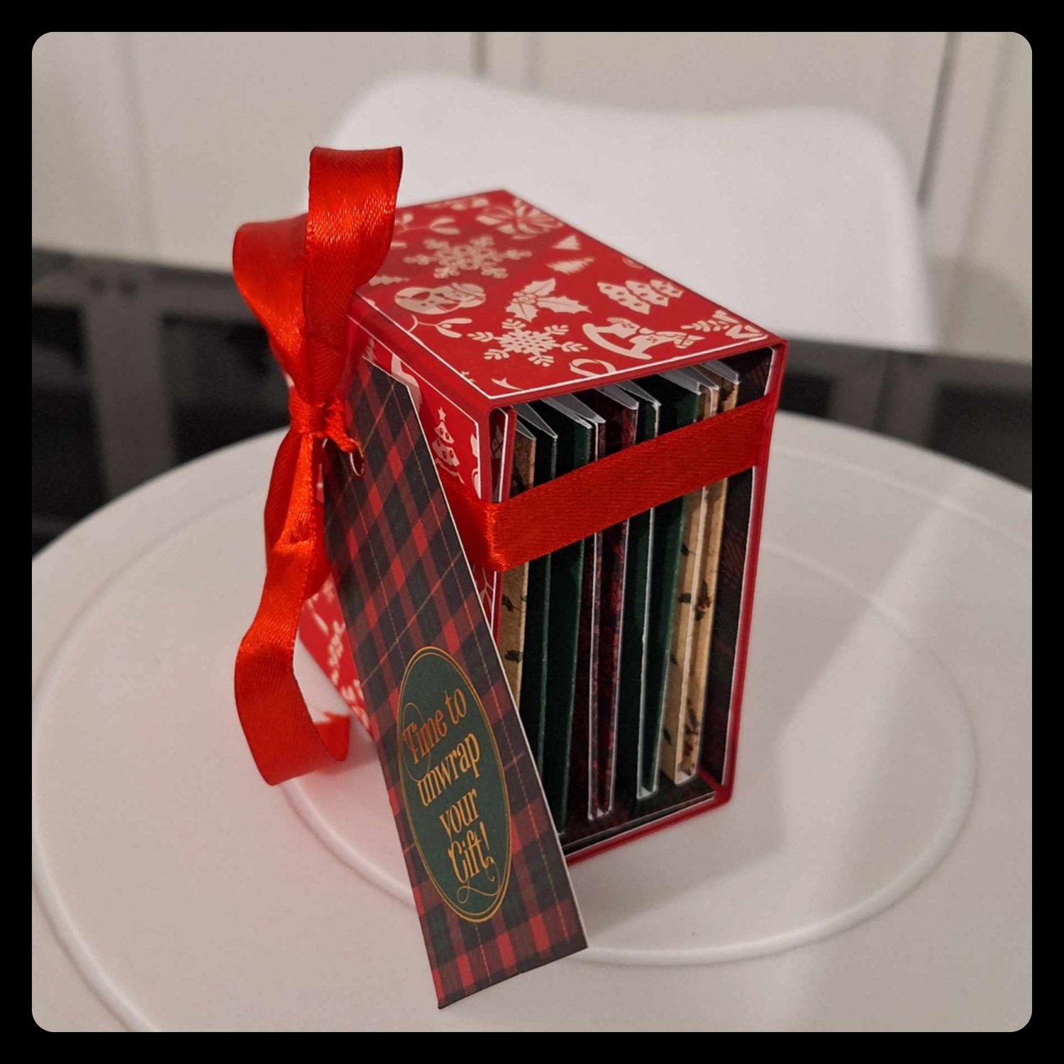 - Du papier 30x30 à motifs (Noël ou autre) pour les sachets de thé et les décors