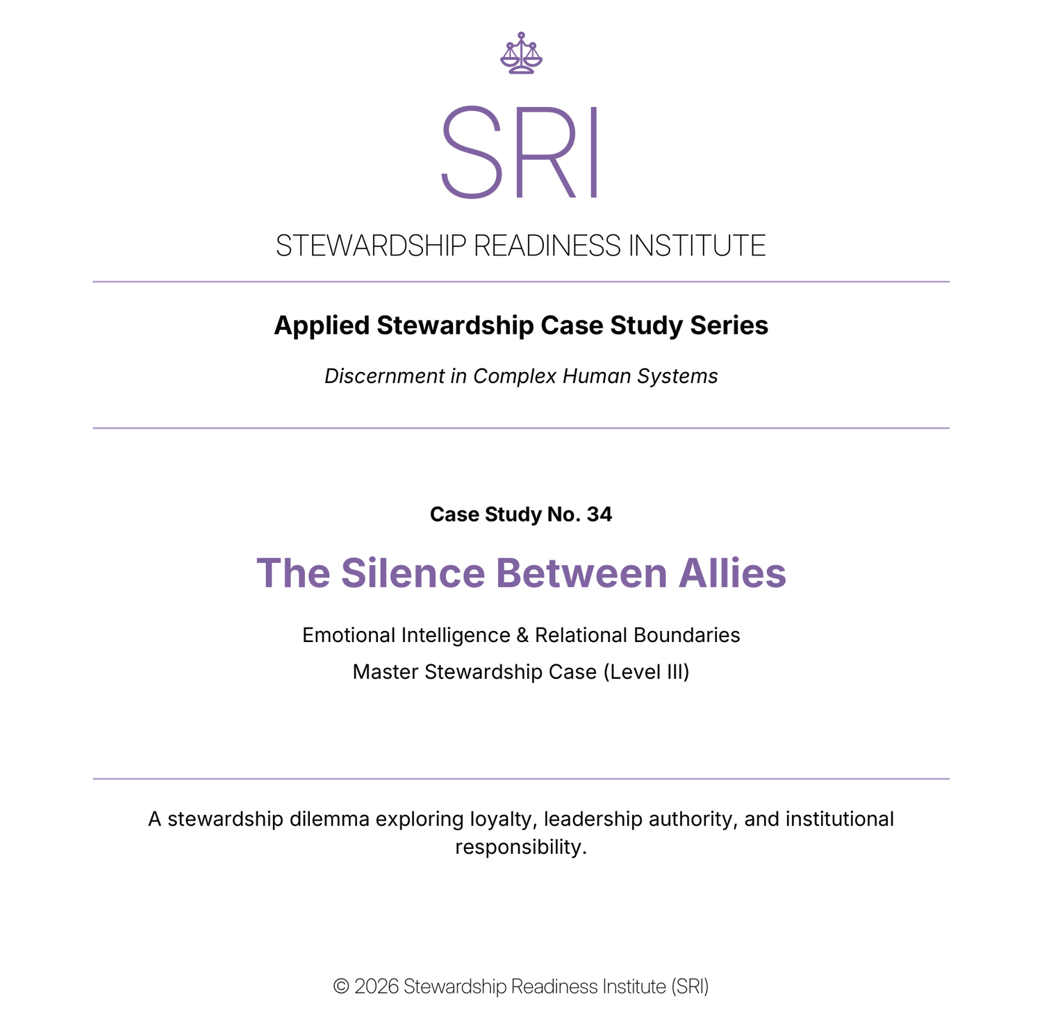 Case Study 34 – The Silence Between Allies explores a leadership dilemma where unspoken tension weakens trust. This case invites reflection on underlying system dynamics, hidden incentives, and the often-unseen forces shaping behavior. Through this lens, leaders are challenged to move beyond surface-level responses and engage the deeper patterns influencing outcomes, strengthening both clarity and long-term stewardship capacity.