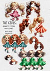 🌟 4 boys and 4 girls, blonde hair as standard but Titian and brunette hair clipart is provided for each doll. Blue and brown eyes unless eyes are closed.