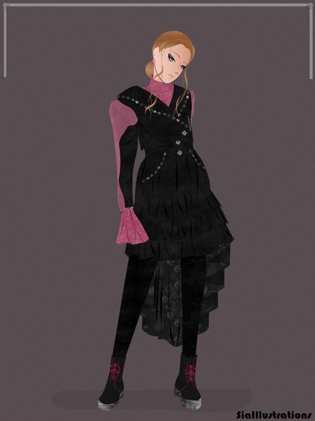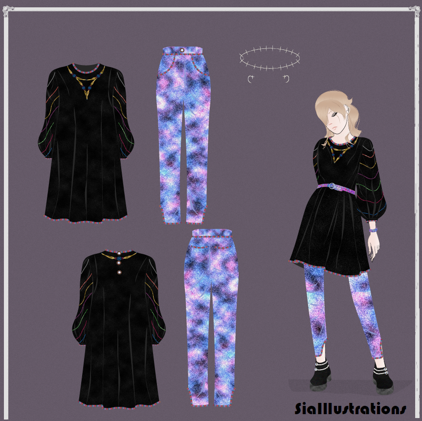 Get ready to warm up in the cool season!! "Fall/Winter 2021 Luxury Casual Collection" features two new outfits for your winter wardrobe. The first look is a two-piece mini coat and a skirt. The coat design has a long built-up collar and fan-style sleeves with three ruffles layered skirt. The second look is a round neckline black top with long bishop-style sleeves and flashy straight pants. The high-resolution illustration includes front and back views of each garment and is available in PDF and PNG formats.