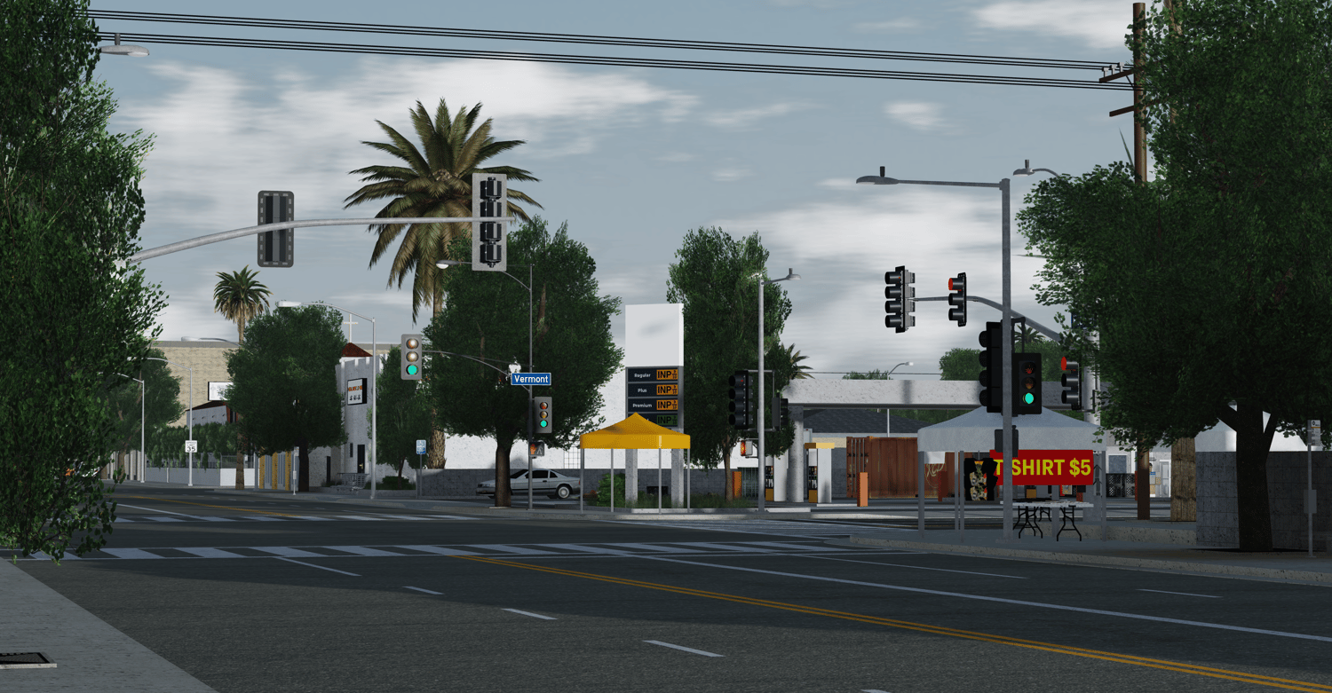 - Authentic LA feel with many stores, suburbs, gas stations, motels, banks, etc.