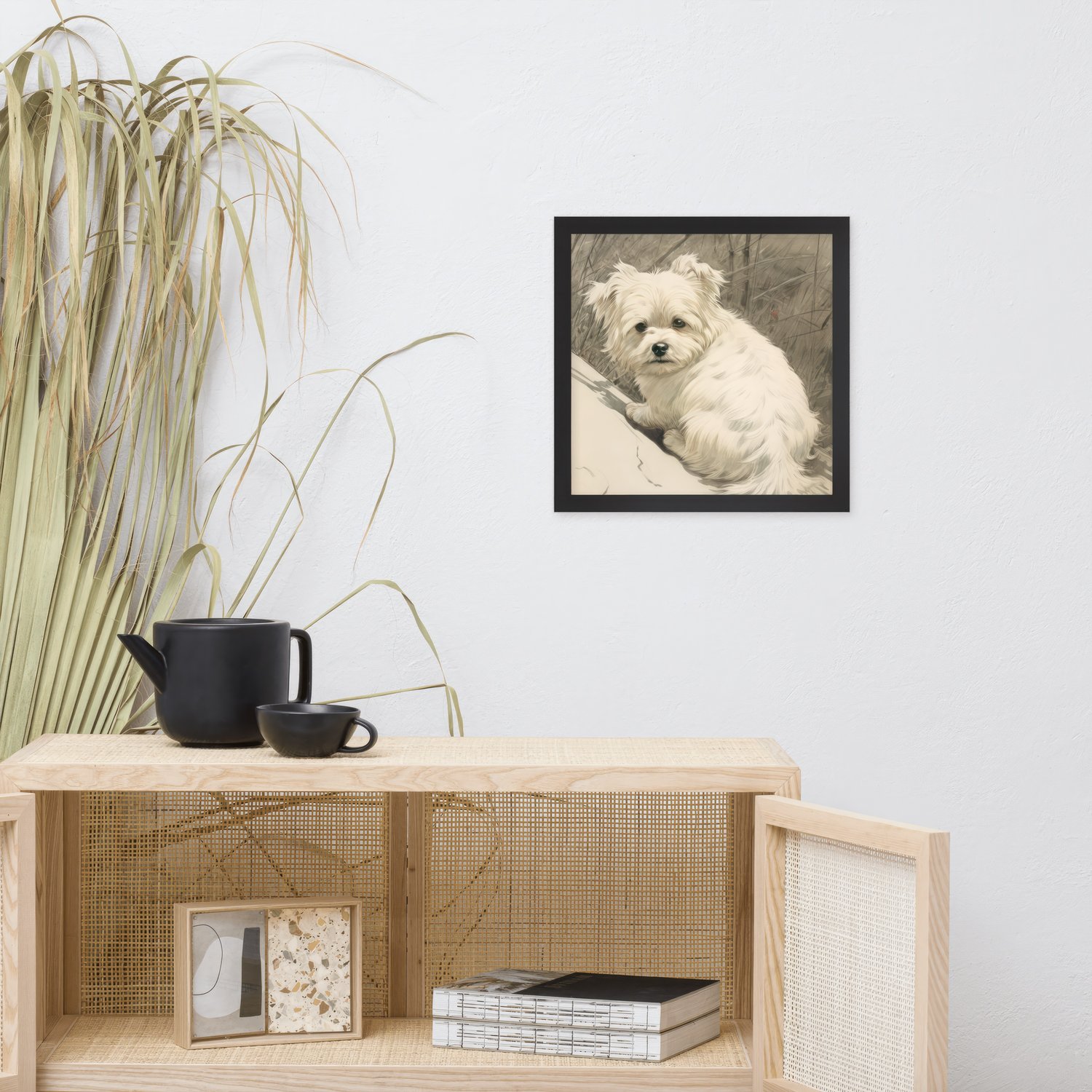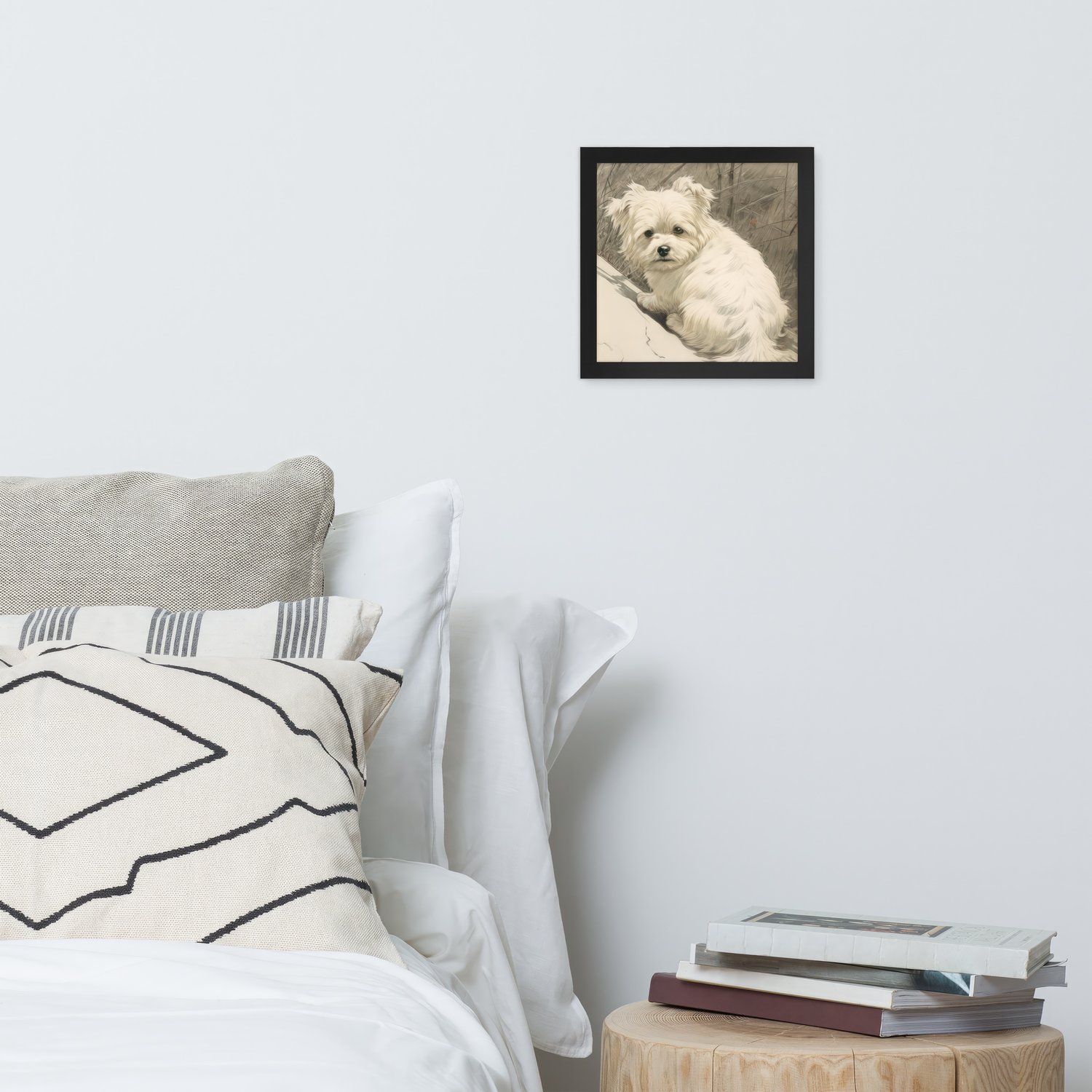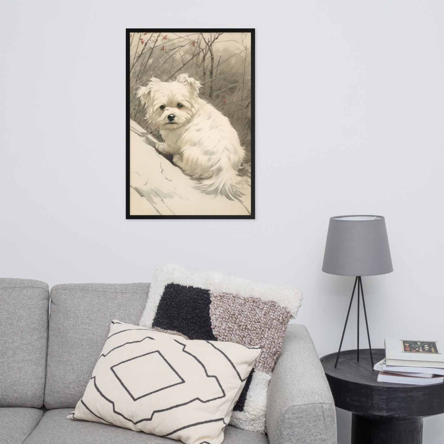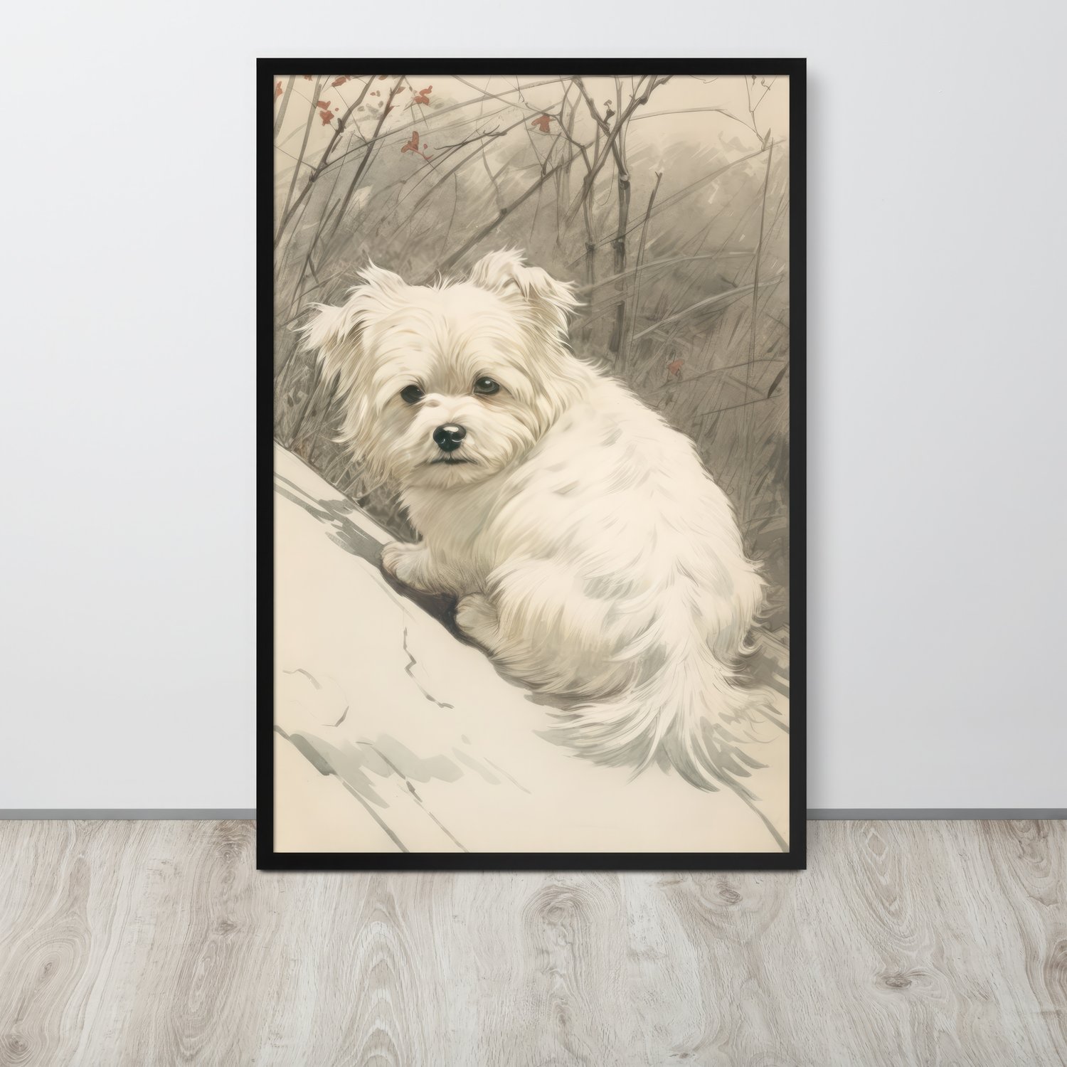 Capture the joyful spirit of a white puppy playing in the snow with our Snowy Paws Doggo digital file. This Japanese fine line drawing style artwork brings a sense of whimsy and innocence to your home, allowing you to print it in various sizes and formats to suit your preference.
