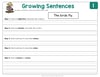 Growing Sentences - 20 Worksheets is a unique, step-by-step activity set designed to help students enhance their sentence-building skills. With a focus on gradually expanding short sentences by adding descriptive words, phrases, and details, this set encourages creativity while reinforcing essential language skills. Each worksheet starts with a simple sentence, guiding students through steps that help them craft more detailed and engaging sentences. Each worksheet features a different base sentence to help students practice. Prompts guide students through adding adjectives, adverbs, phrases for location, time, and reasons, and sensory details.