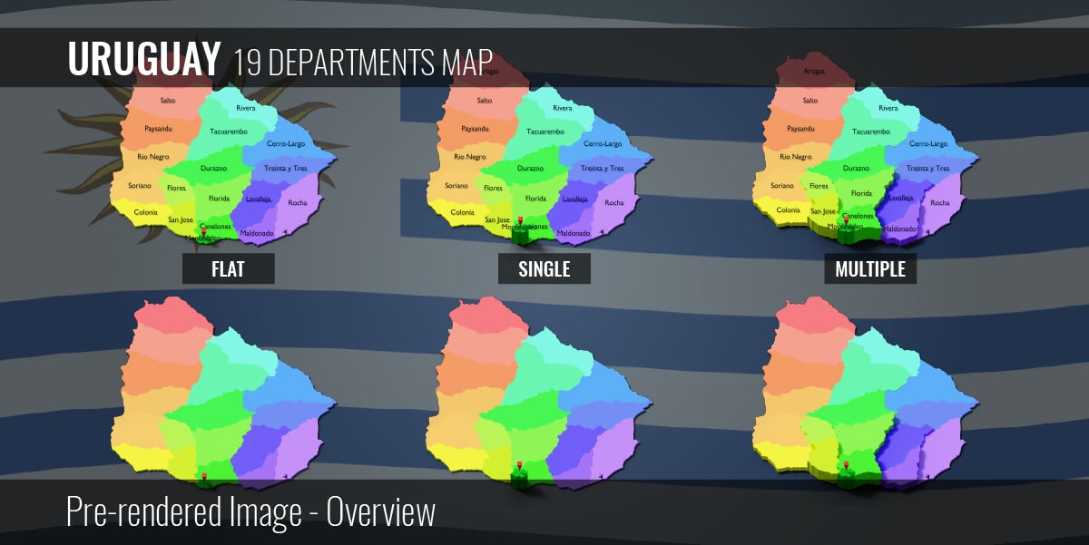 Uruguay - 19 Departments Map (3D + Pre-rendered Images)