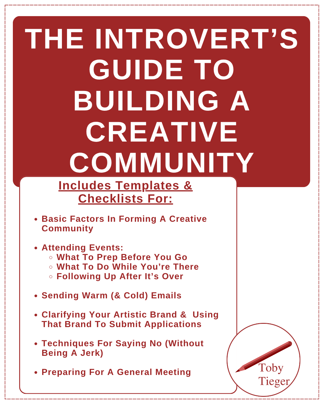 How did I build up this group of fantastic humans? Haphazardly and mostly by accident, to be honest, at least until the last couple of years when I’ve been trying to do it more intentionally. Which is why I wrote a free guide that’s, ahem, sort of written for other people and also sort of written for myself called The Introvert’s Guide To Building A Creative Community. It’s 27 pages and a series of checklists and templates about how to socialize and connect with fellow creatives without sinking neck-deep into that lonely cesspool we all call ‘Networking'.