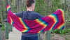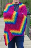 Inspired by the rainbows of light against a wall when sunlight passes through a multi-faceted glass, Wavelength is a wrap worked in slip stitch, using increases and decreases to add movement to the stitches. It is an excel lent way to use mini-skeins, either from purchased sets or the accumulation of leftover yarn from completed projects.