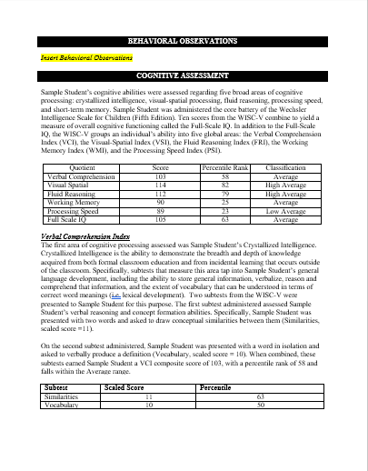 This WISC-V Score Report Assistant, which includes a WISC-V report template, will turn your Q-Global/Q-Interactive score report into a complete psycho-educational report, in just a few clicks. No manual entry required.
