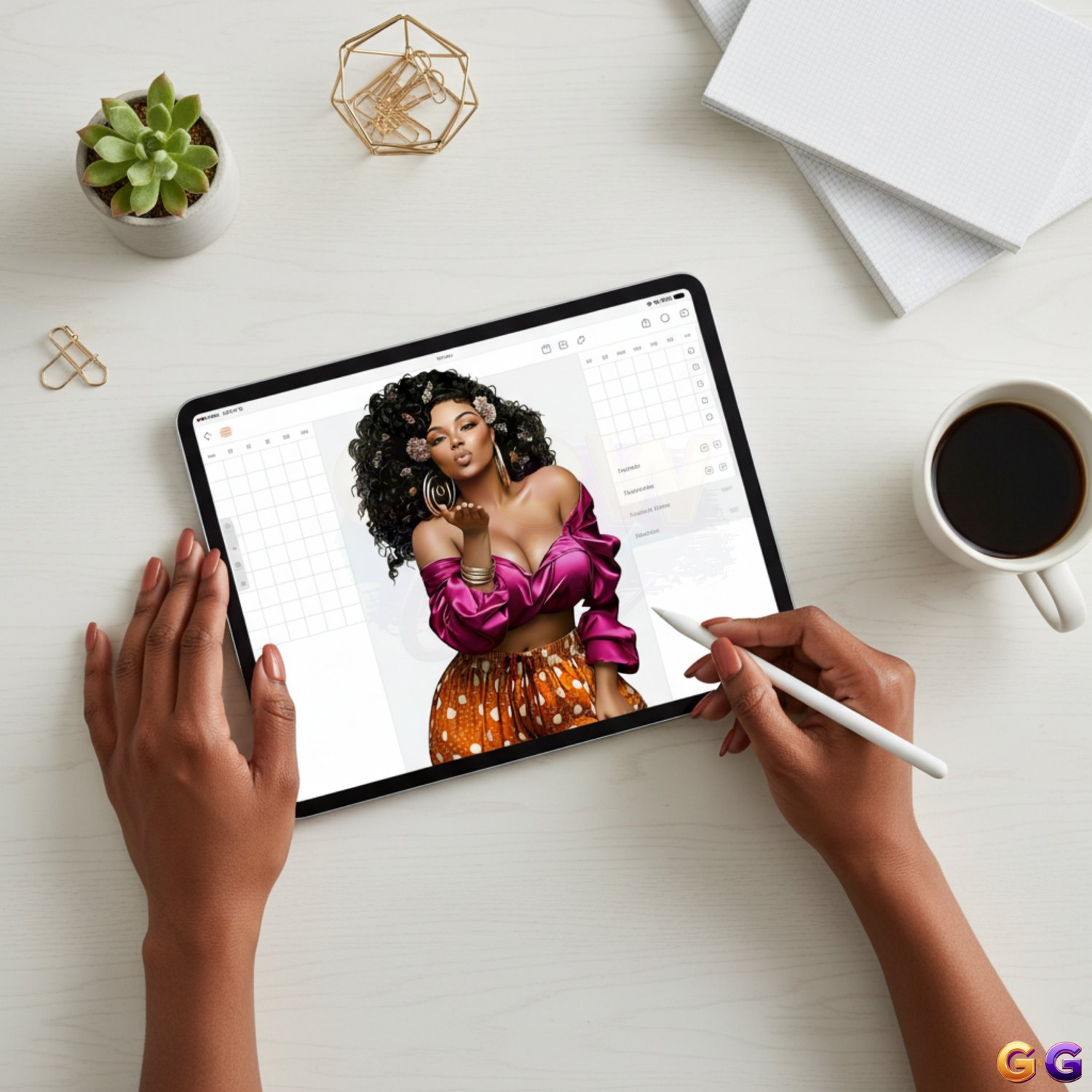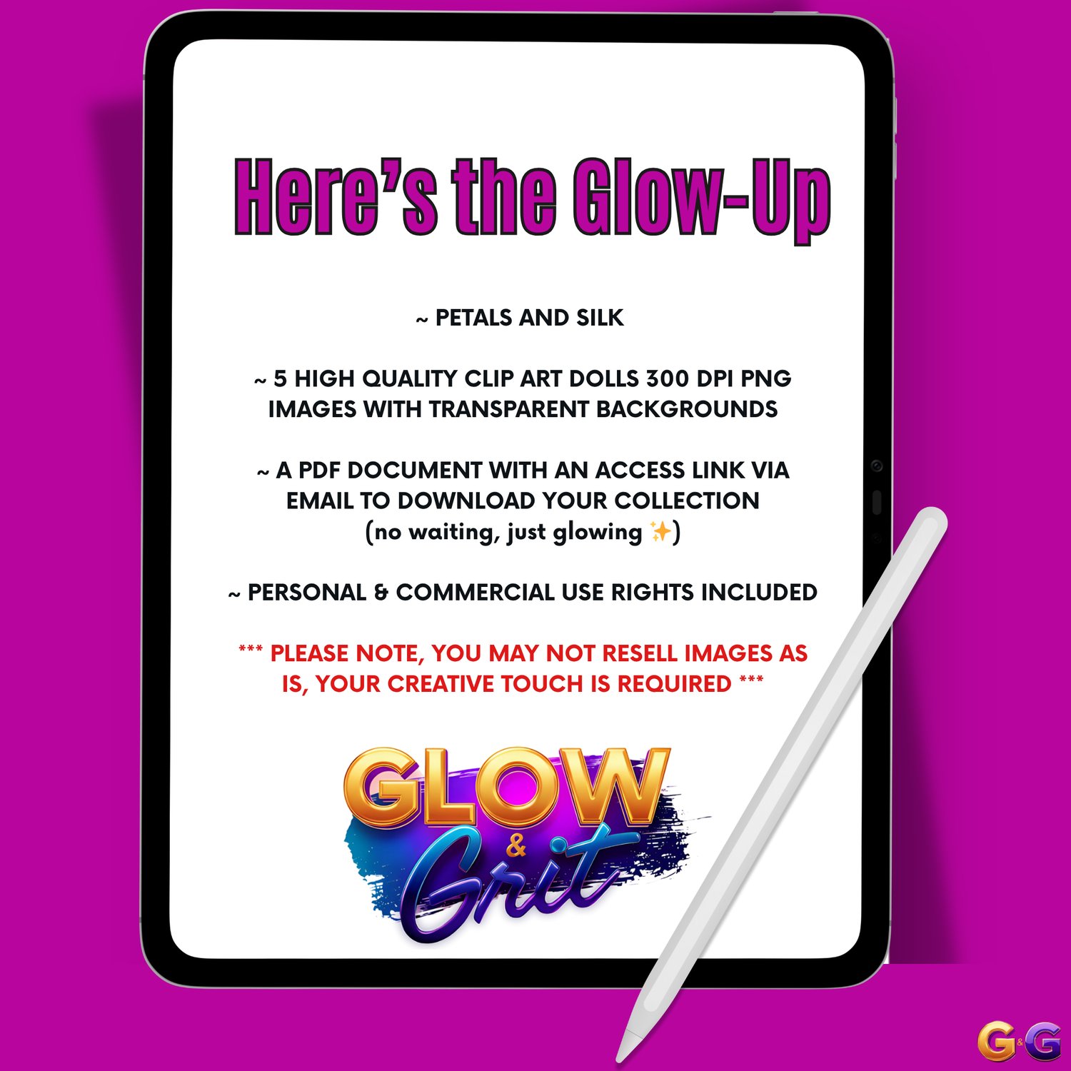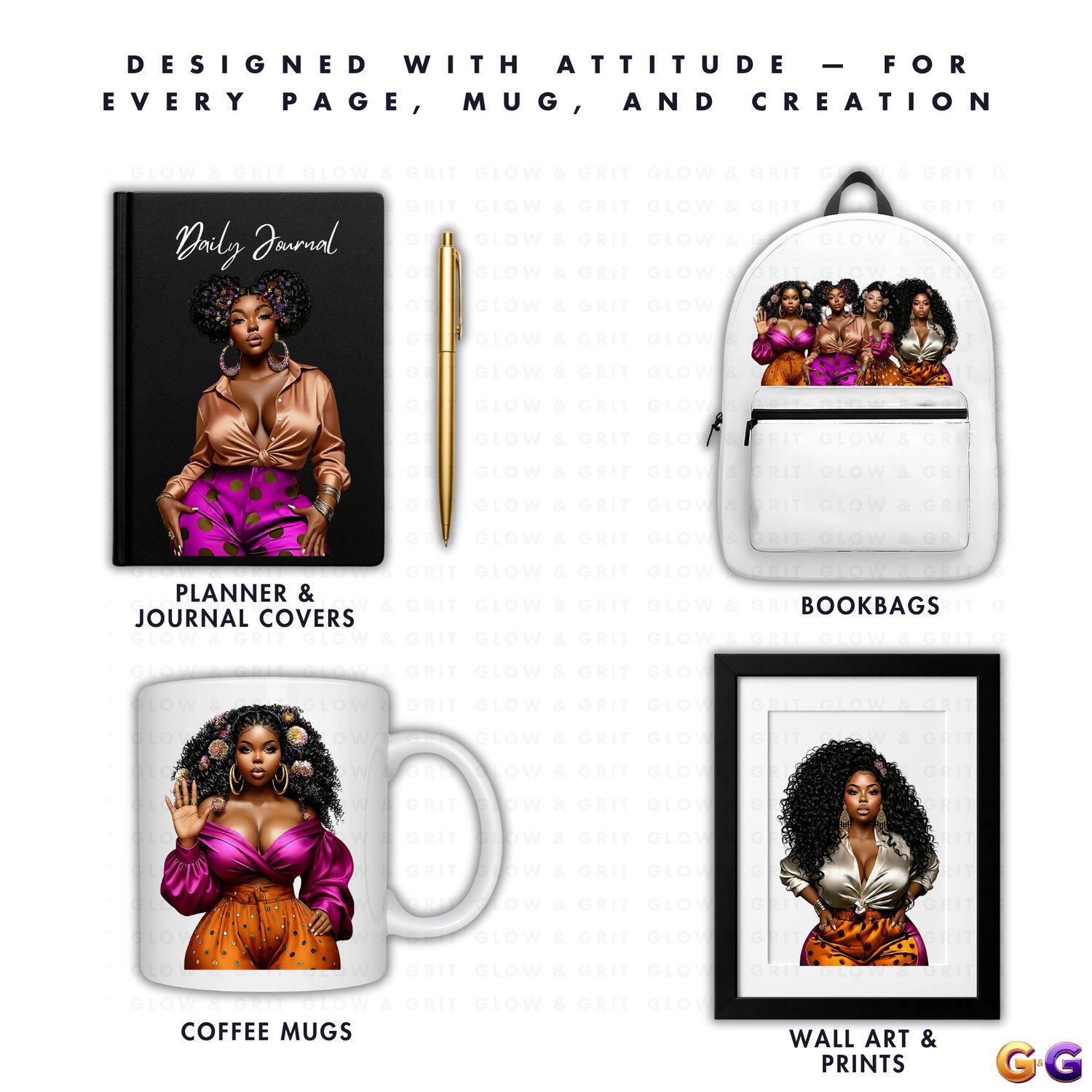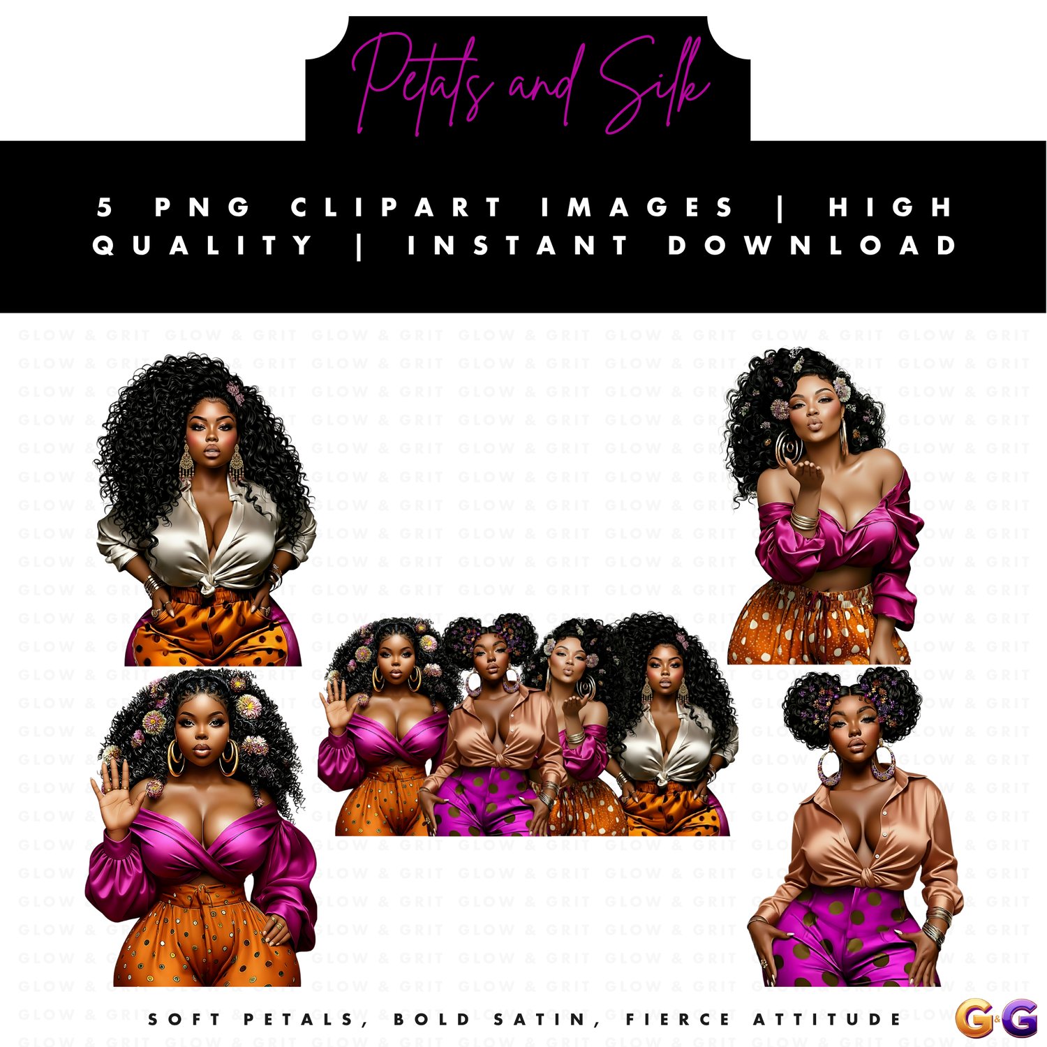Bring luxury and softness to your projects with the Petals and Silk Clipart Bundle a luxe Glow & Grit collection that blends vibrant florals, flowing fabrics, and unapologetic Afrocentric beauty. Perfect for planners, apparel, home decor, and creative designs that need a touch of elegance.