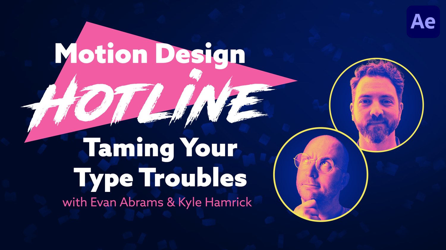 Evan and Kyle's After Effects project files from the 7/31/2023 episode of Motion Design Hotline, "Taming Your Type Troubles."