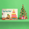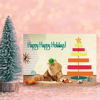 This is an adorable Christmas Holiday card that features a fancy Persian cat enjoying his presents!