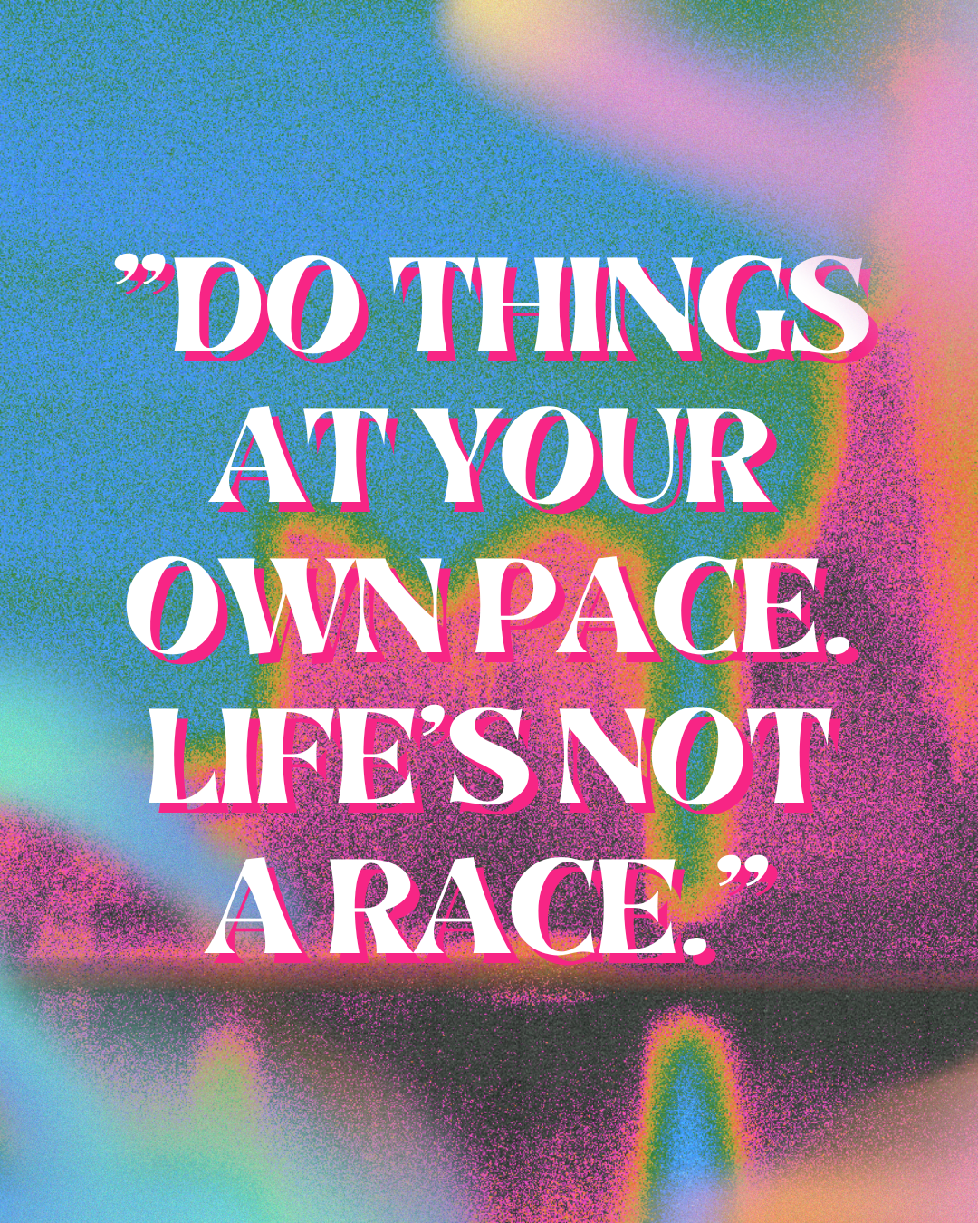 A futuristic reminder that we all need to do things at our own pace. No need to rush. We're all in our own world, be at your own pace. A cute Instagram or wall art to hang up.