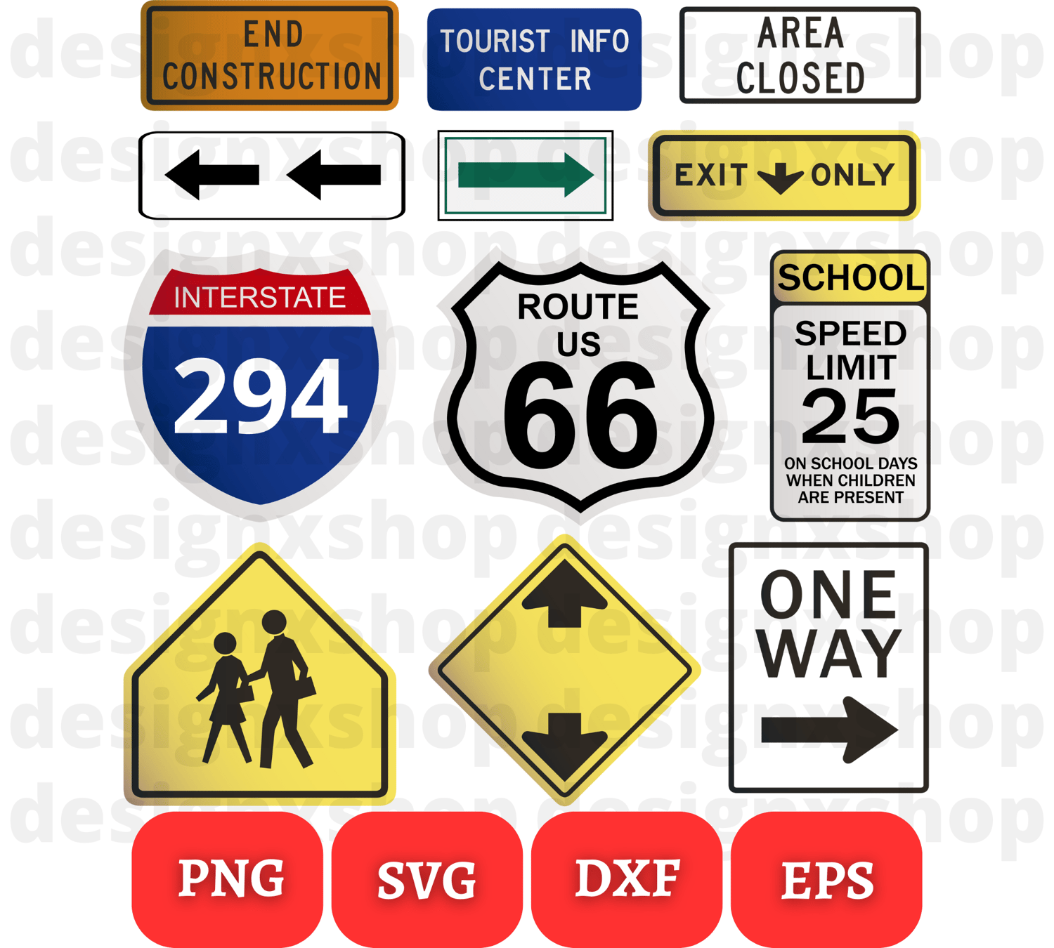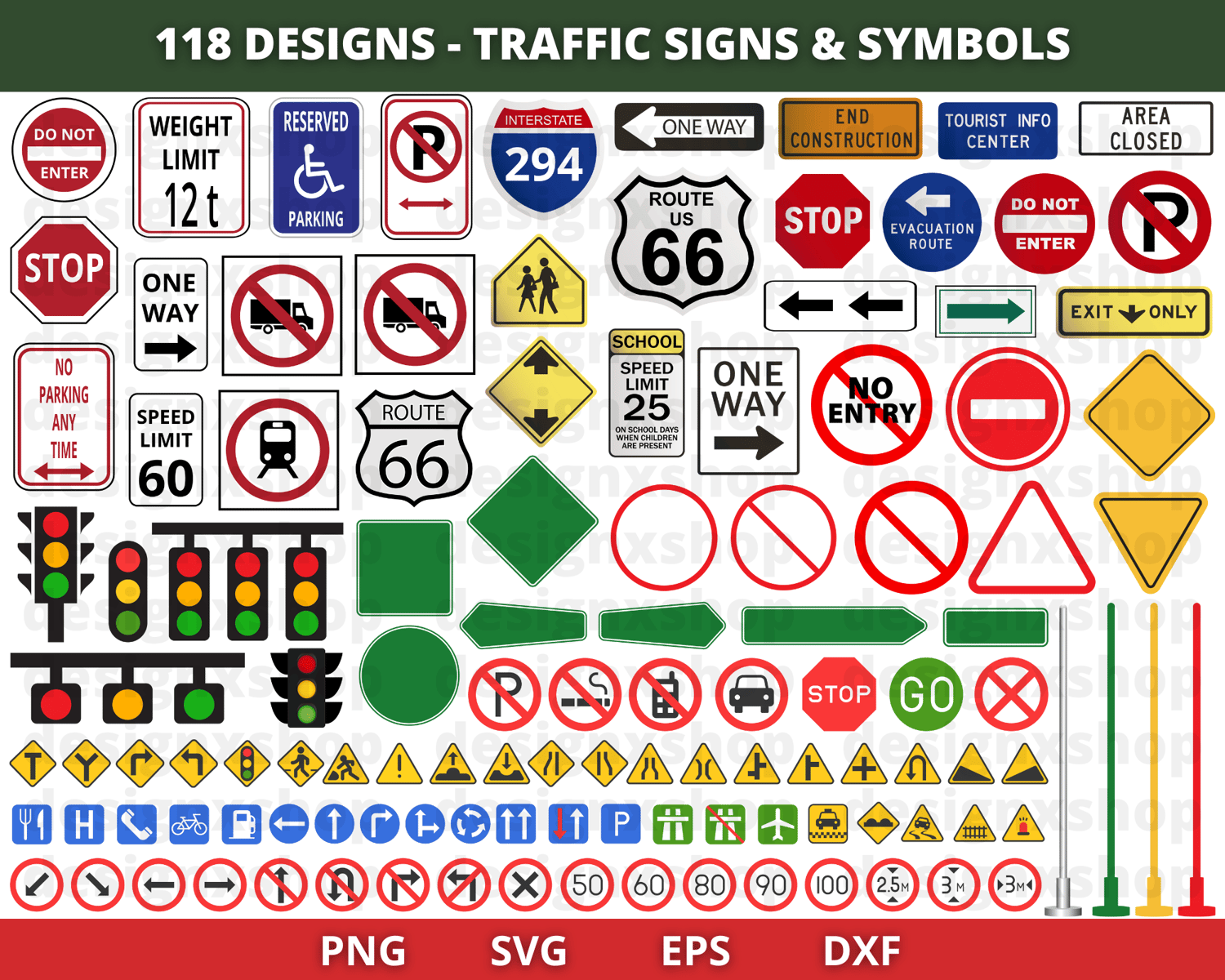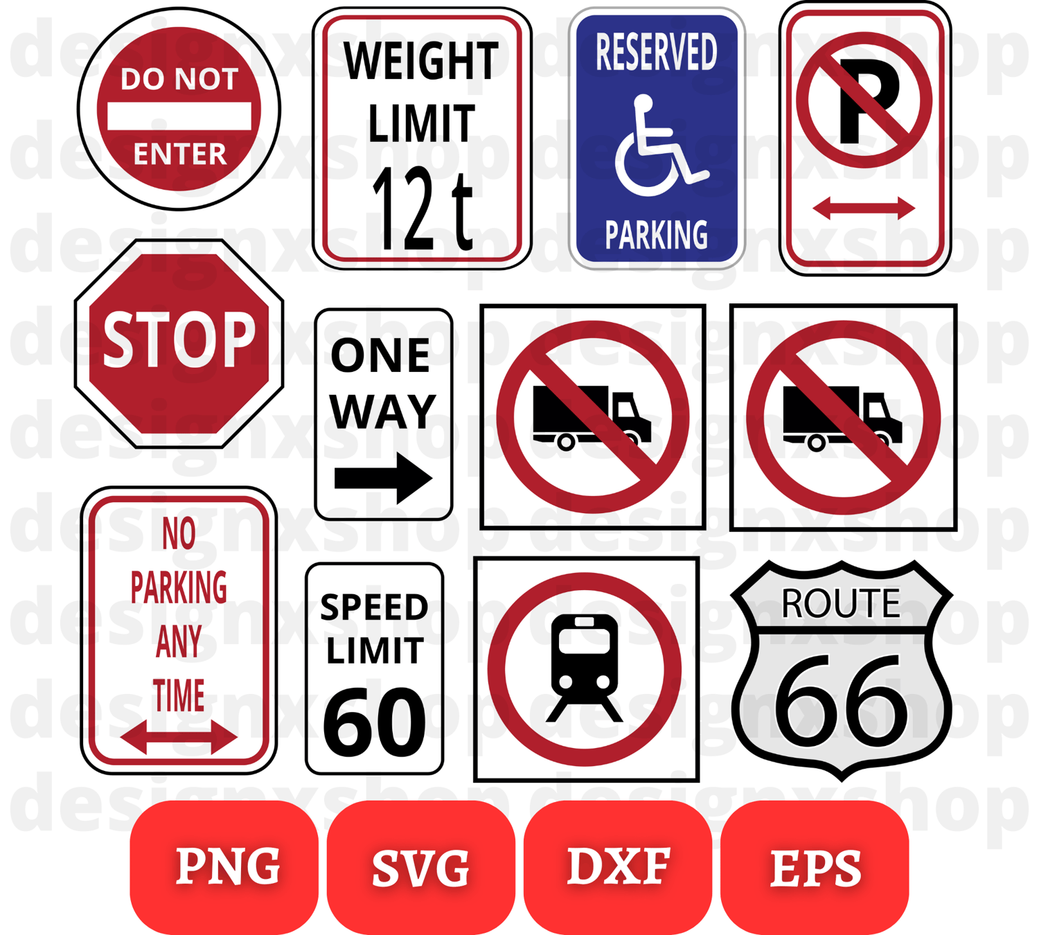 Traffic Signs Clipart, Road Sign Clipart, Street Signs, Stop, Speed Limit, One way, Traffic lights, Yield, Rail Road Crossing, Do not Enter