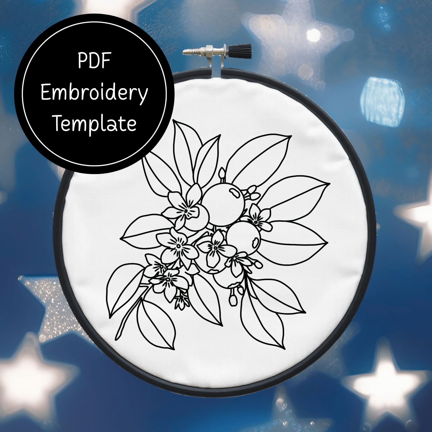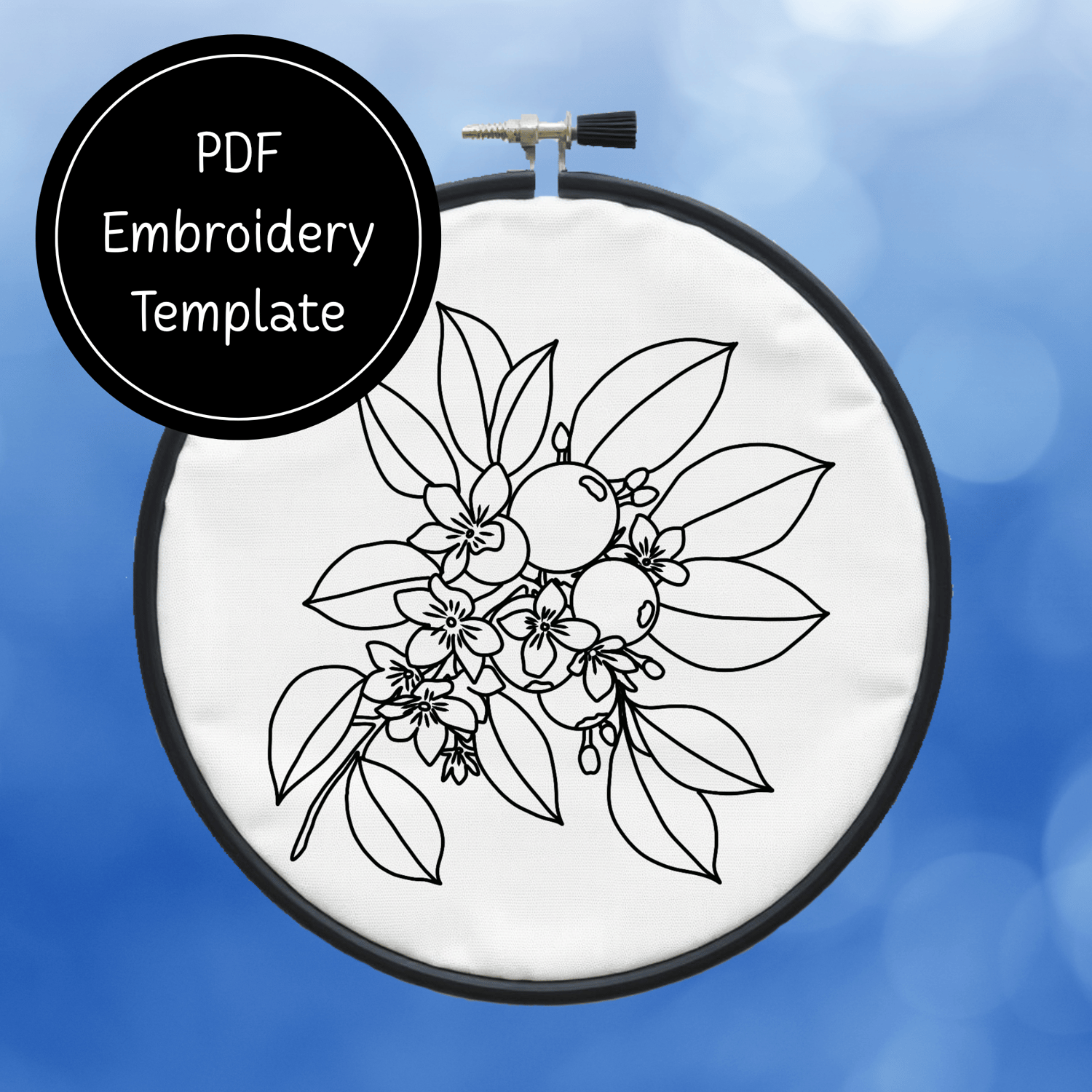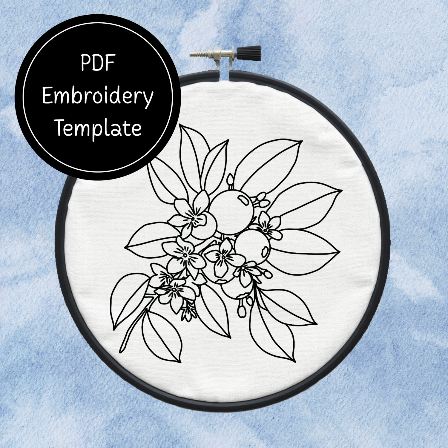 Berries and Flowers Hand Embroidery Pattern DIY Floral Design For Hand Stitching - Instant Download