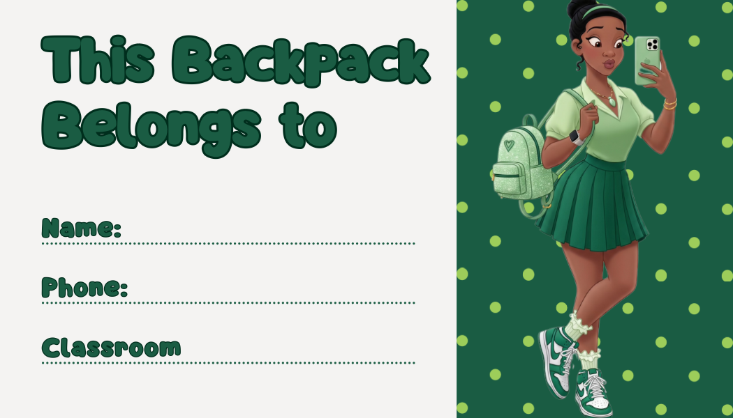 Add some personality to your backpack with our Character Carry Tags! These stylish, durable tags feature fun, vibrant character designs that match your vibe—whether you’re bold, bougie, or chill. Perfect for kids, teens, or anyone who wants to stand out. Personalize them with your name or favorite phrase and carry your character everywhere you go!