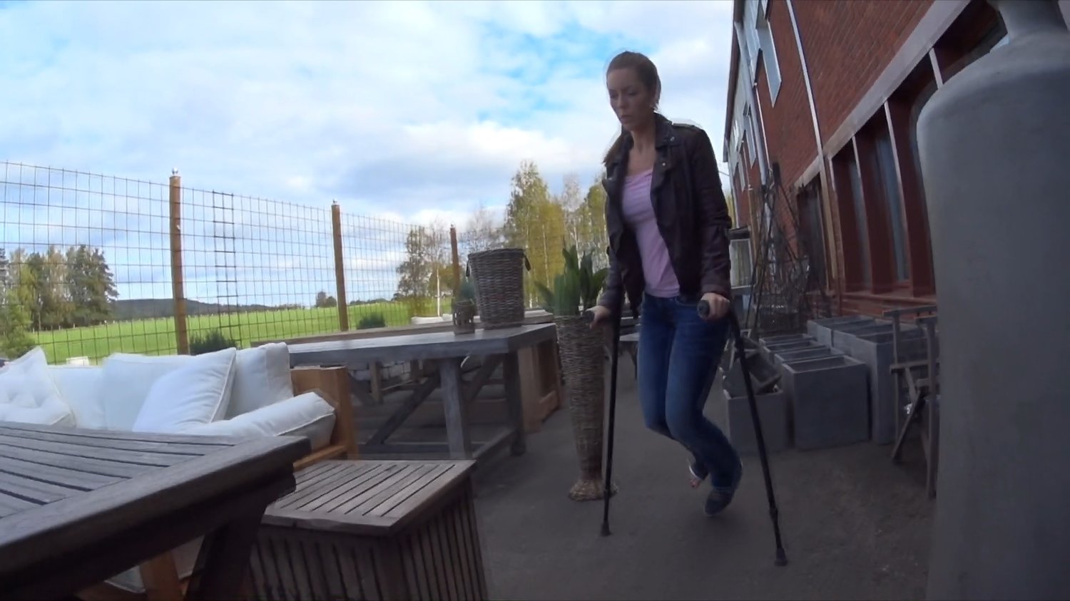 Melinda has a black short leg cast and is on a hunt for new furniture’s to her home. She decides to visit a very big store with two floors that sells overmuch furniture’s. It’s not so easy for her to crutch around in the store because it’s crowded with furniture’s, but she won’t give up and continues to go through the entire store. There are some nice closeups on her toes in the end. She didn’t find anything she wanted to buy this time.