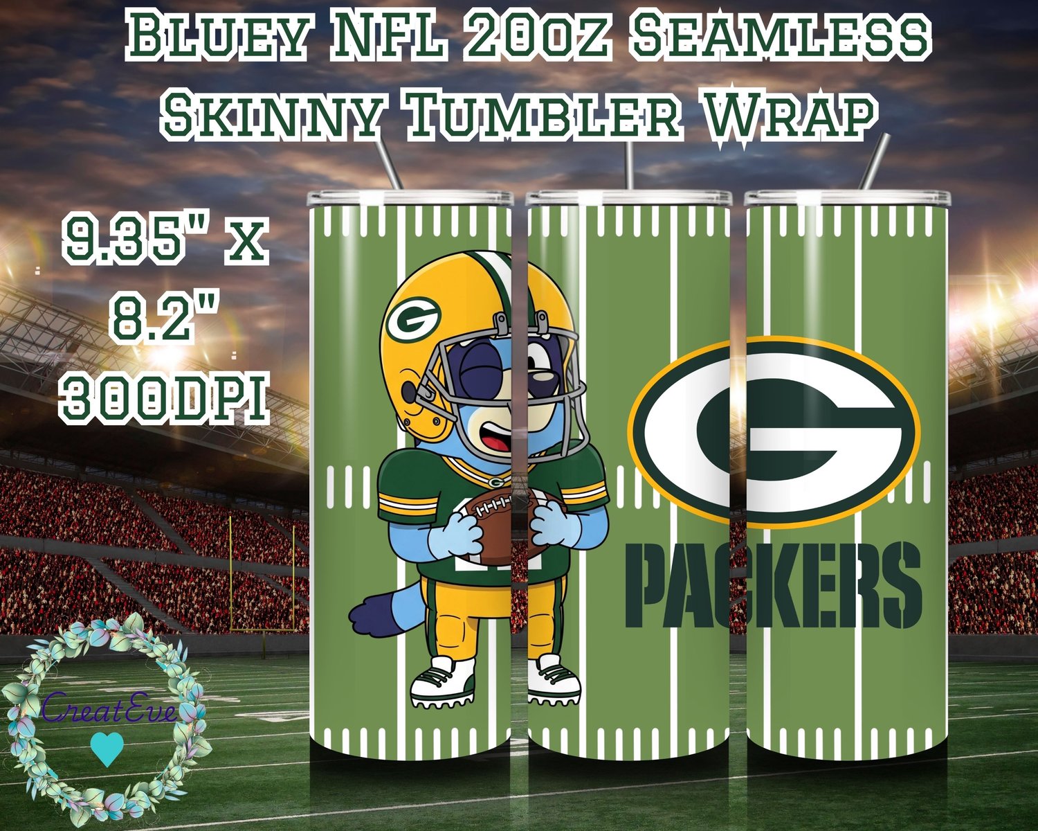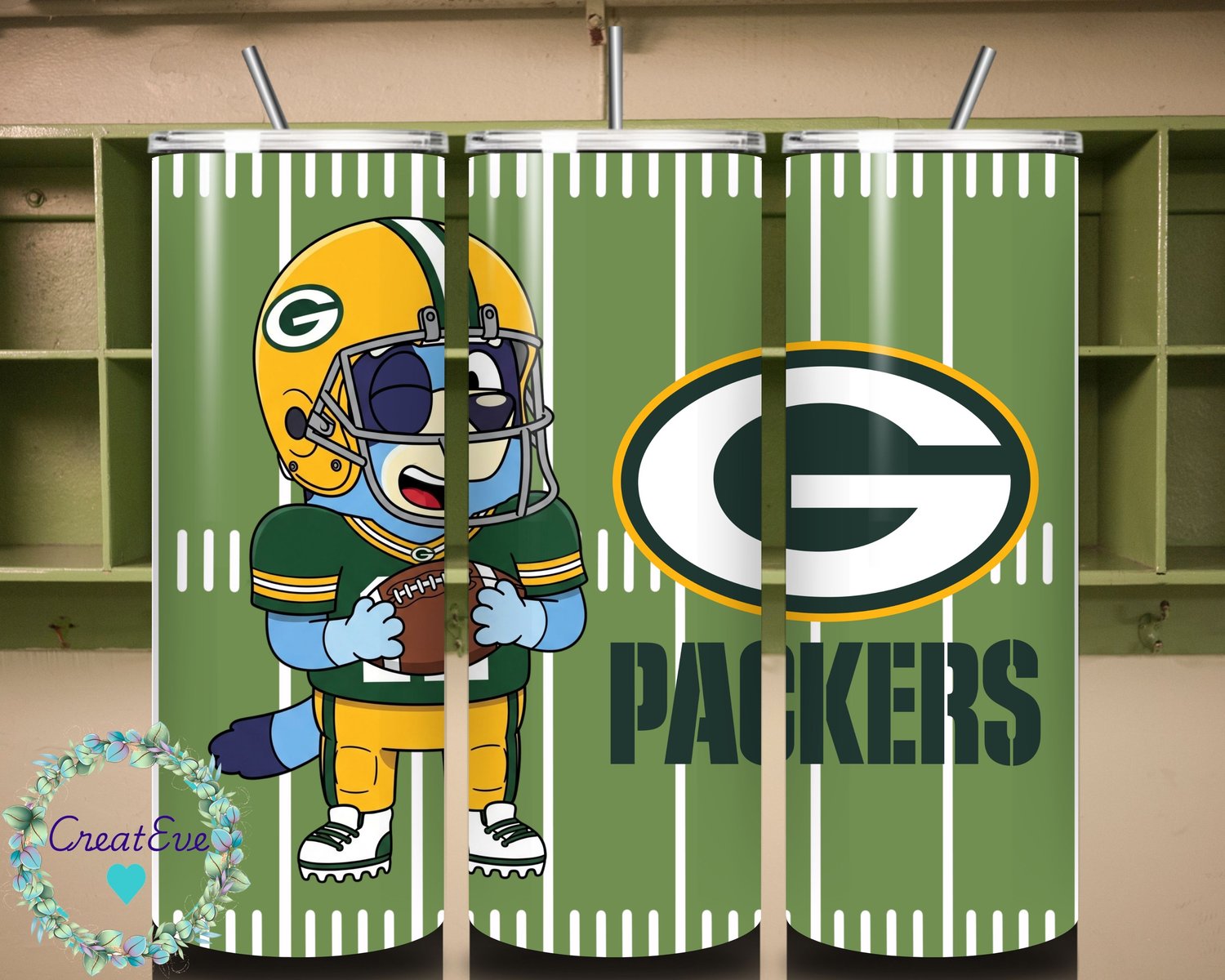 Bluey NFL Packers 20oz Seamless Skinny Tumbler PNG 300dpi