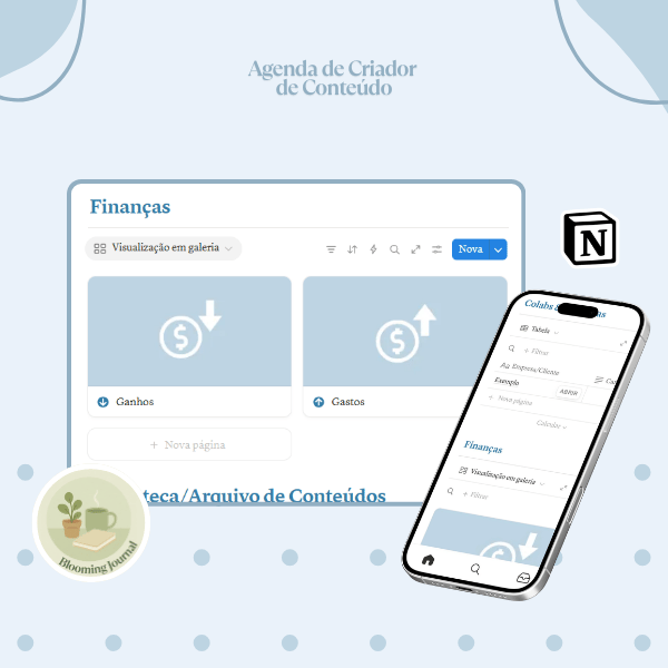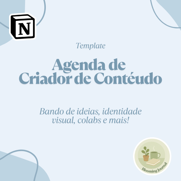 Este template organiza diferentes partes da criação de conteúdo dentro do Notion, ajudando a acompanhar ideias, planejamento e colaborações no mesmo espaço.