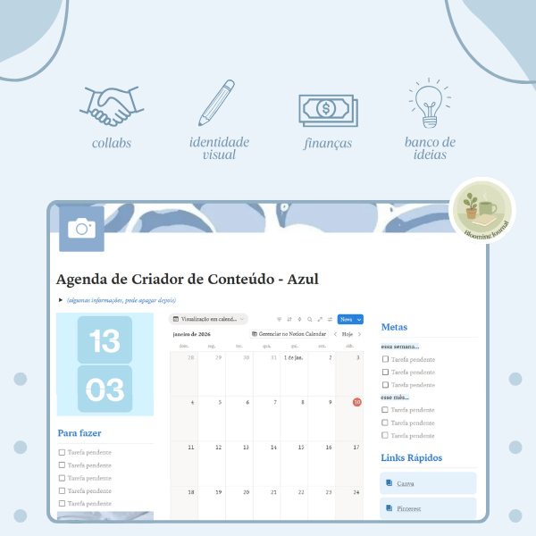 Agenda de Criador de Conteúdo - Azul