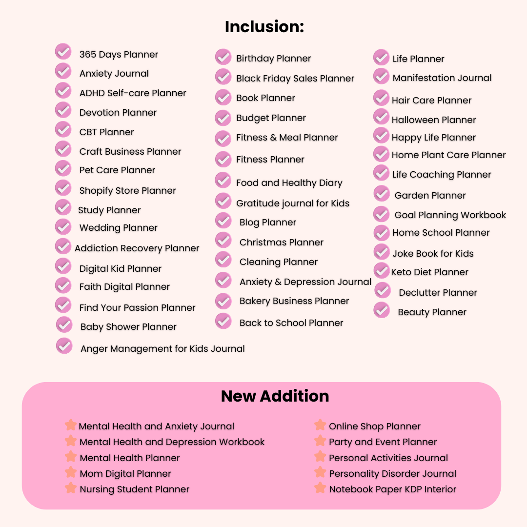- Broad Appeal: This collection is not just for individuals; it appeals to entrepreneurs, businesses, and influencers looking for ways to plan content or manage their work-life balance. These planners can be marketed to small business owners for social media planning, moms for family scheduling, or fitness enthusiasts for diet tracking. The broad appeal ensures a large customer base, increasing your sales opportunities.