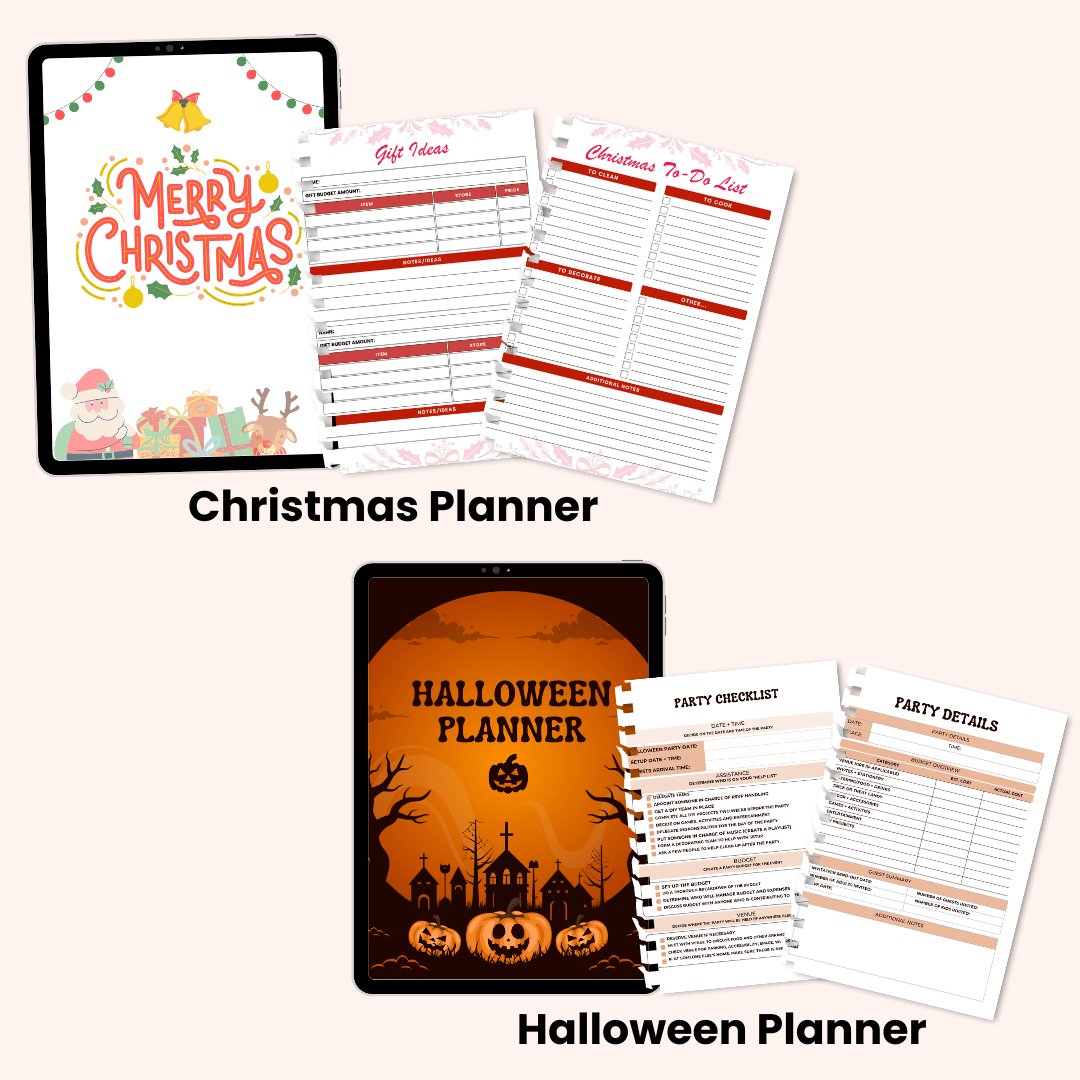 - Holiday-Themed Planners: Halloween, Thanksgiving, Christmas, New Year