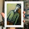 Man with Hat Painting by Ken Law 5x7 Inch Abstract Portrait