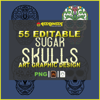 55 Editable SUGAR SKULLS Art Graphic Design