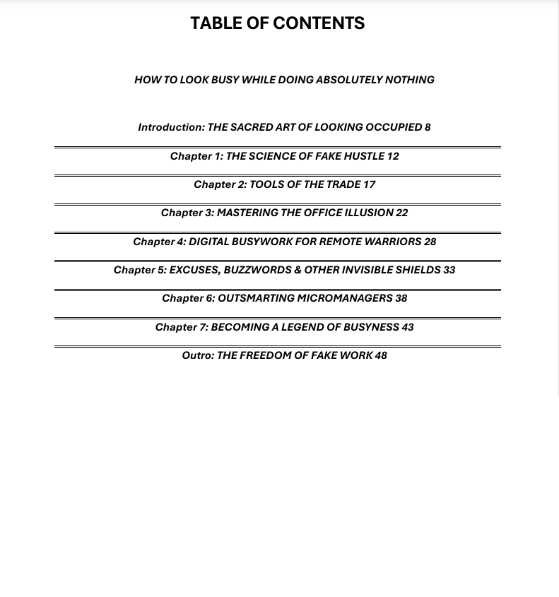Inside you’ll learn the timeless art of appearing productive without burning out: