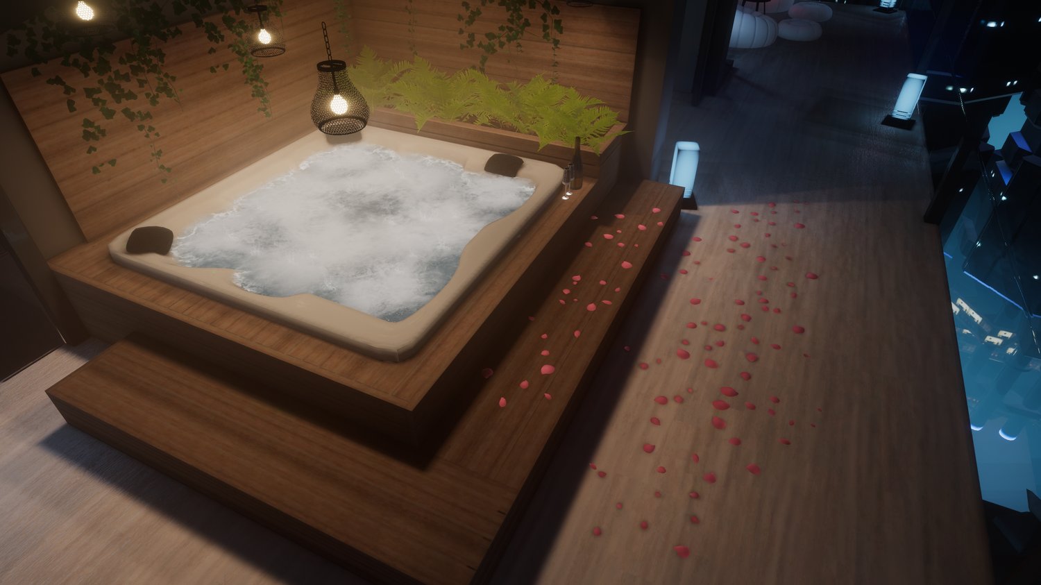 Creates a cozy night time atmosphere with warm lighting and soft contrasts, perfect for relaxing or late play sessions.