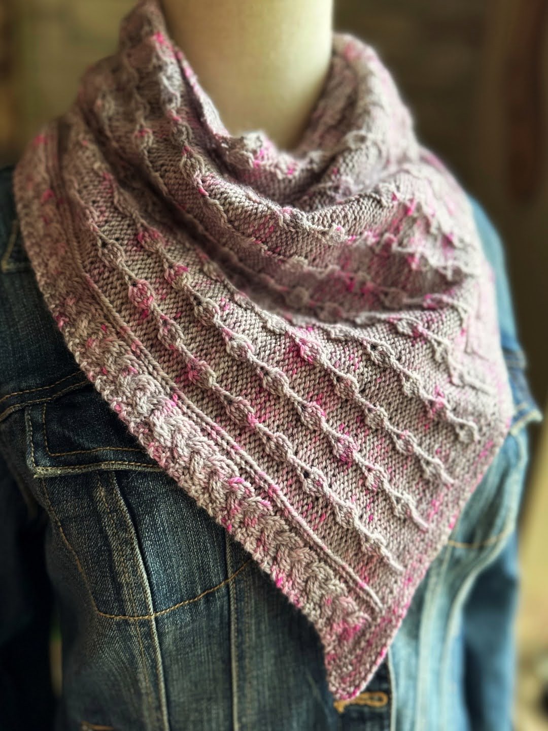 Worked flat with increases on one side, it features intricate cables and delicate bobbles, evoking the movement of gentle waves. Perfect for adding sophistication to any outfit, this shawl allows knitters to create a timeless accessory in their favorite colors.