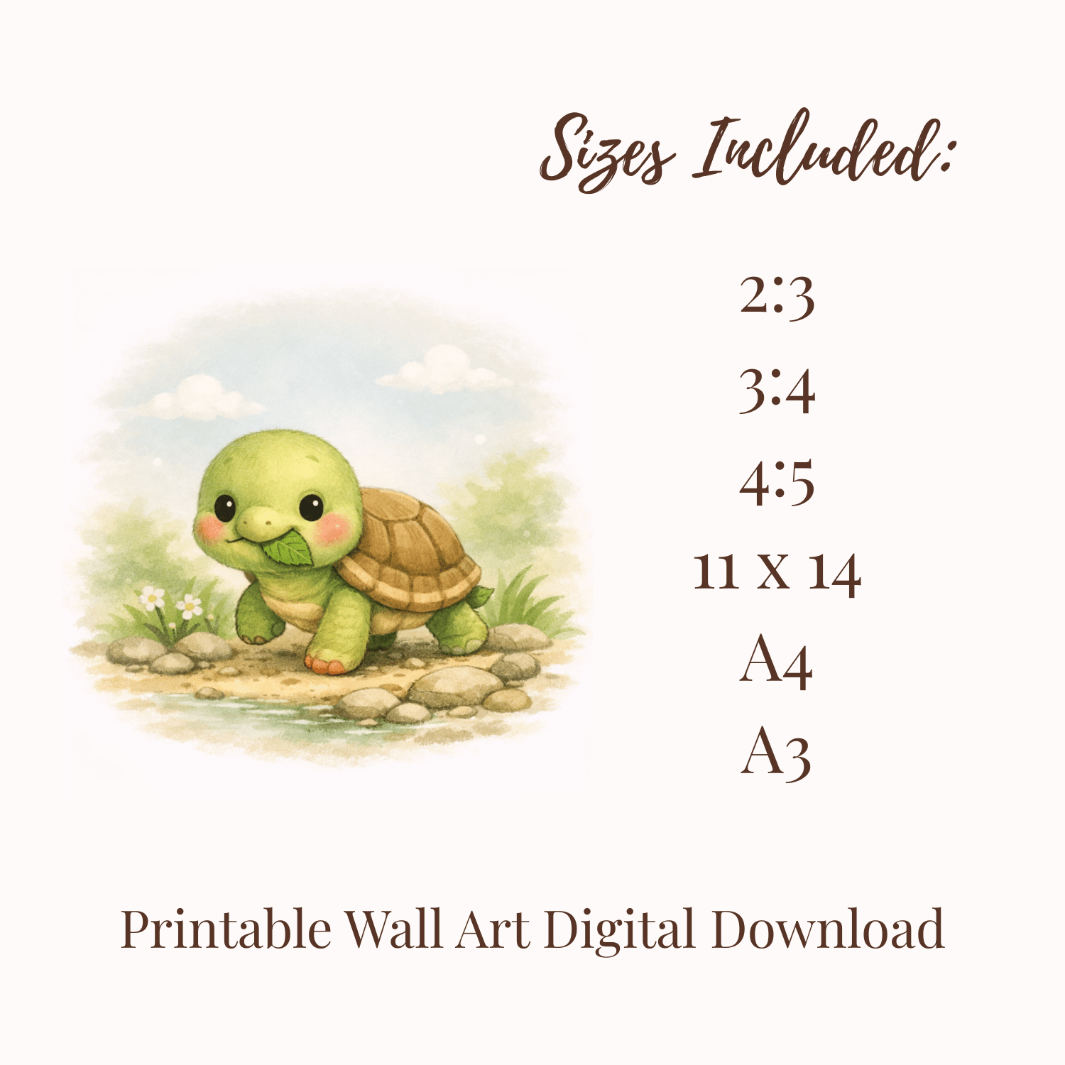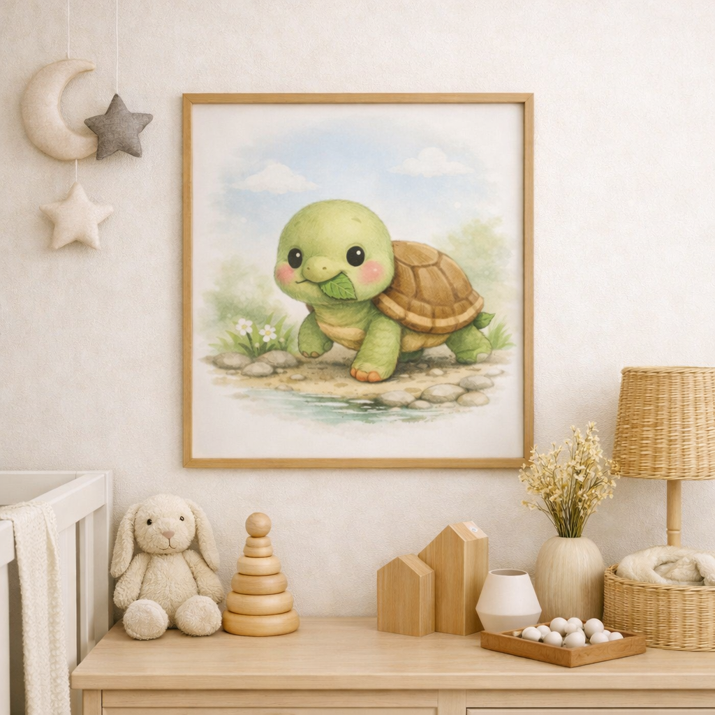 Bring calm, modern magic into your nursery, kids’ room, classroom, or family space with this painterly printable wall art featuring a gentle turtle from the Creatures of the Land & Lake collection. Designed with softness and intention, this artwork adds warmth, comfort, and quiet wonder to any environment.