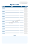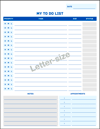 My To Do List is also available in standard letter size. It has the same informational sections as My To Do List A - half size but is 8.5x11 inches with portrait orientation.