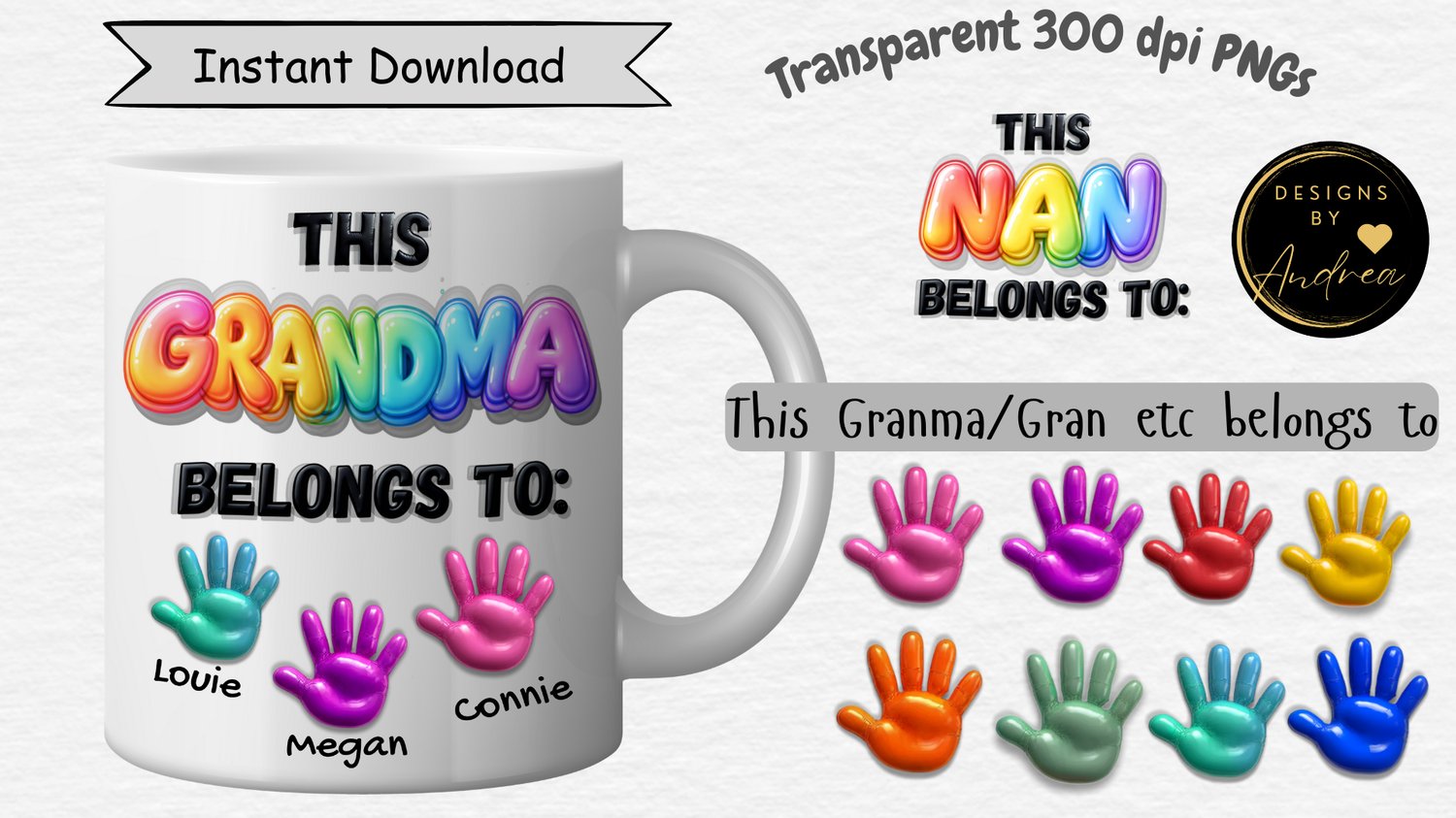 ✨ This Grandma, Gran, Nana, Nan, Nanny Belongs To, plus 8 hands – 3D PNG Design ✨