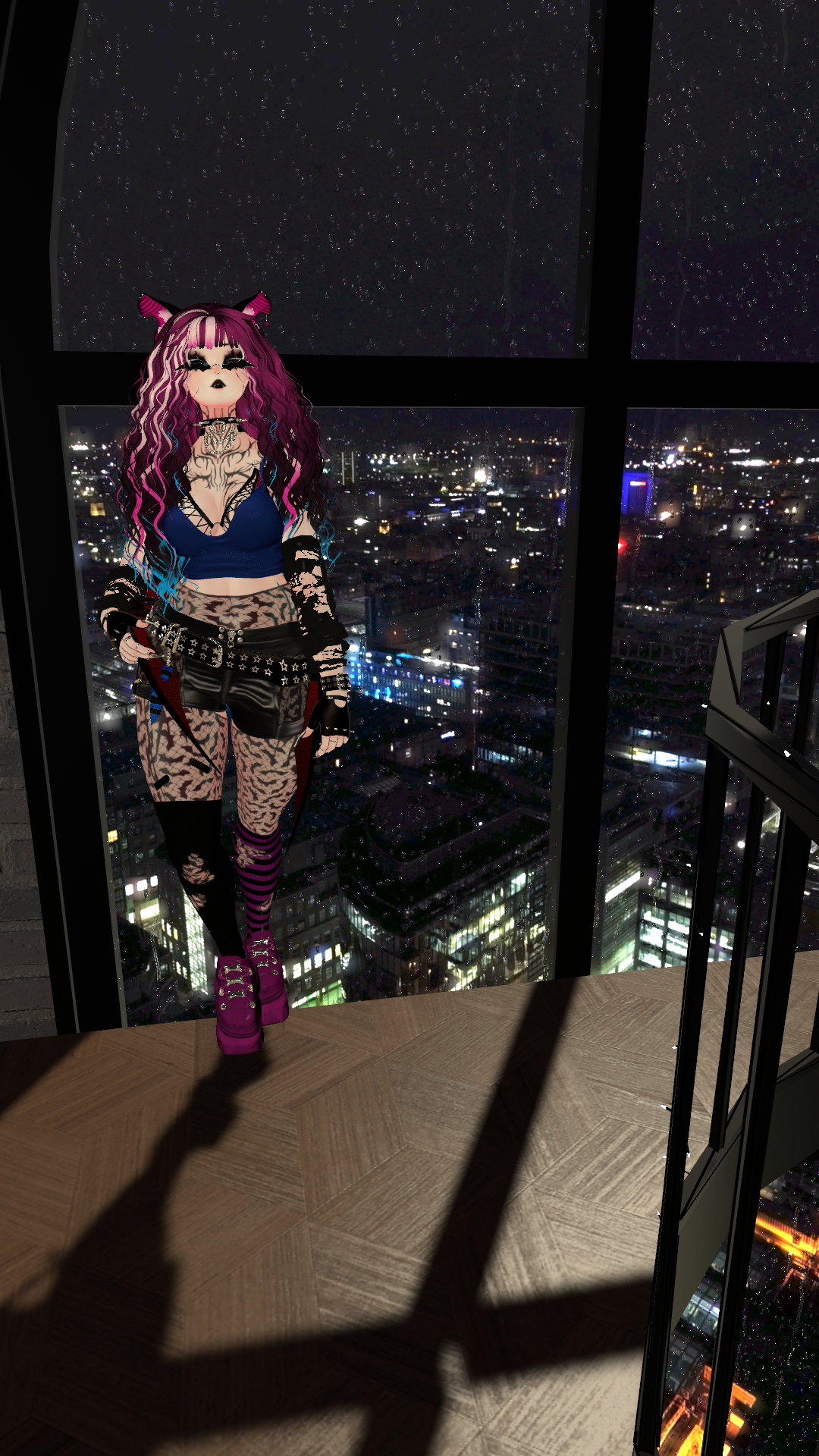 Accessories: Glasses, Arm Warmers, Bracelet, Gloves, Belt, Tail Keychain, Garters, Band Aids, Ear Piercings, Facial Piercings, Choker, Necklace, Rings, Fishnets (PC), Flows (PC)