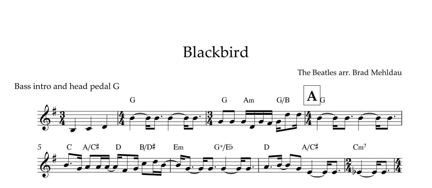 Lead sheet transcription of Blackbird arranged by Brad Mehldau.