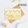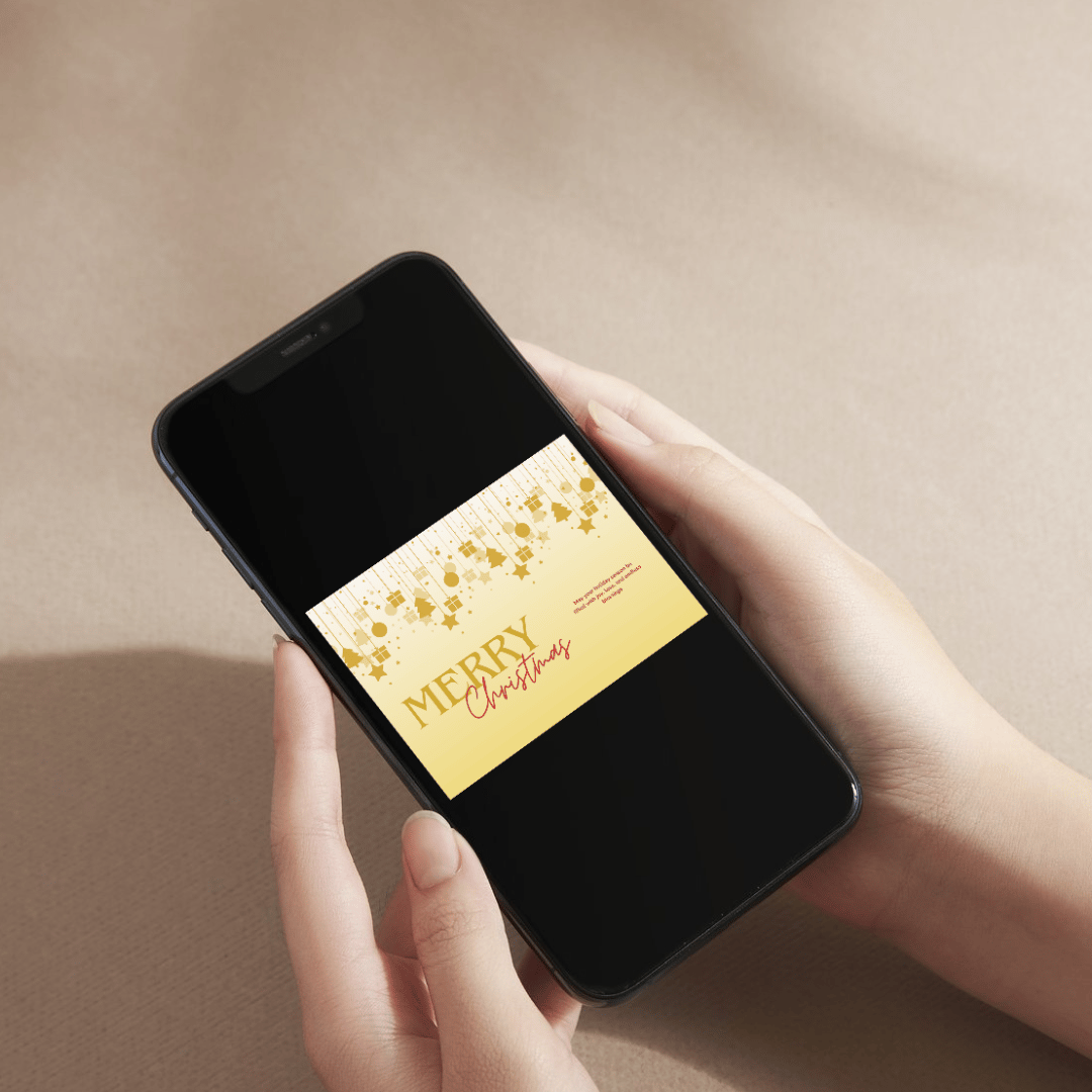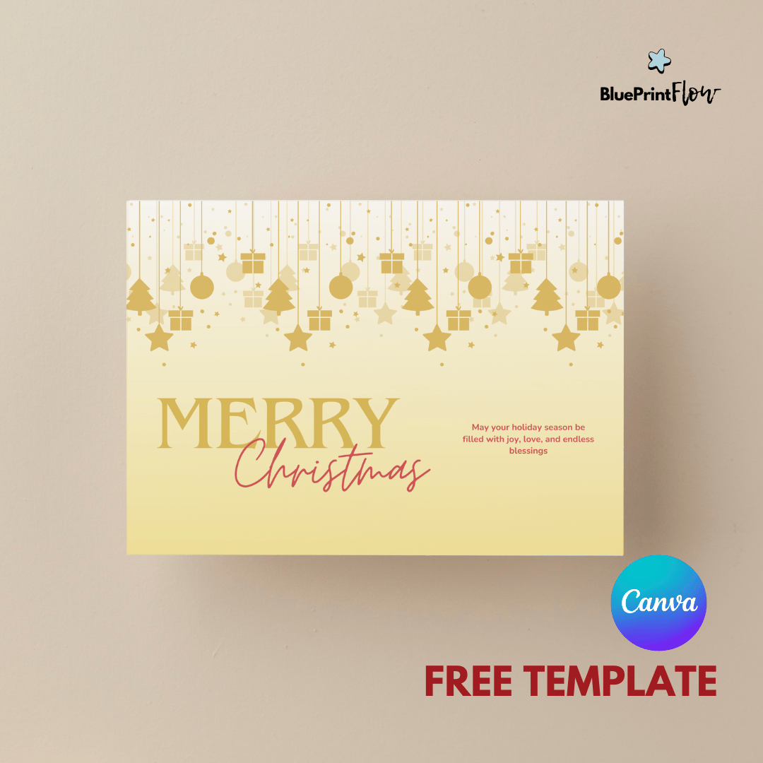Features a golden festive theme with trees, stars, and gift illustrations. Perfect for spreading holiday cheer with style!