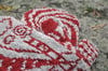 The pattern uses the following techniques: working small circumferences in the round, ability to work stranded colorwork from a chart, color dominance, grafting, and whip stitch.The pattern requires the ability for managing floats in colorwork; Ladderback Jacquard is recommended but references are given for a couple of alternatives.