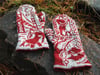 The pattern comes in three sizes: 66, 70, or 74 sts. Right and left mittens are worked from separate colorwork charts. The pattern contains long floats; using the Ladderback Jacquard technique is recommended but not essential.