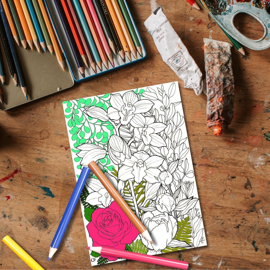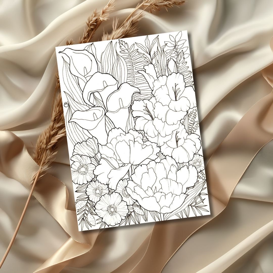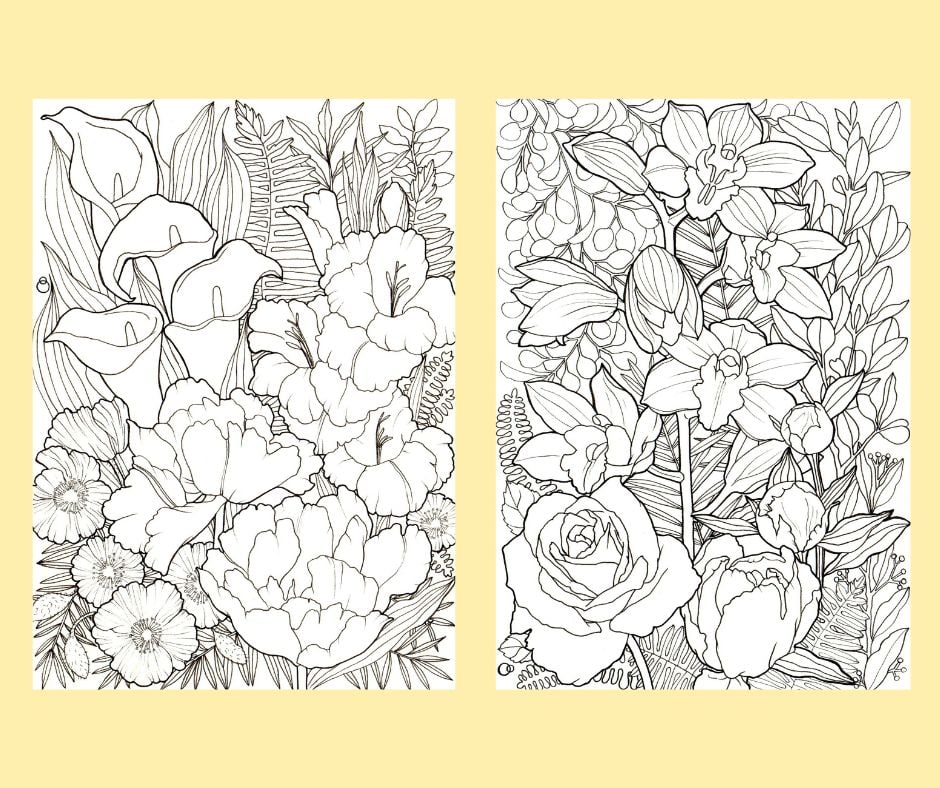 Opulent Flowers Printable Colouring Page Bundle PDF