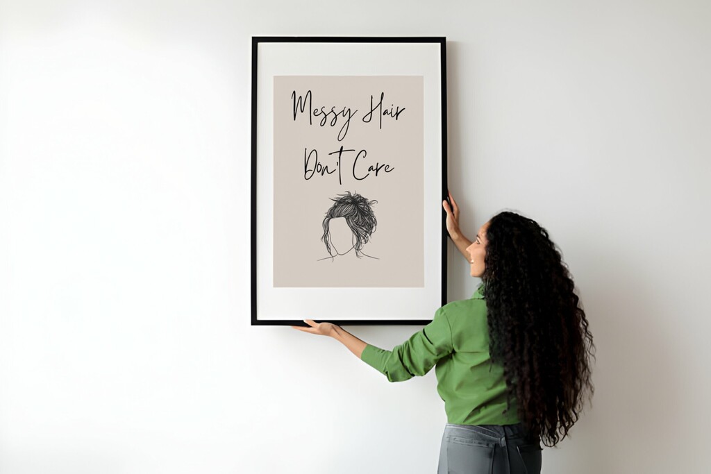 A faceless sketch of a woman with a messy bun — modern and chic with a carefree spirit..